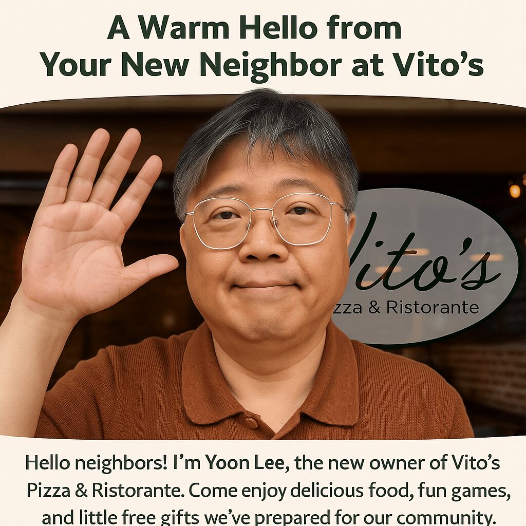 VITO’S PIZZA & RISTORANTE OUR STORY My Journey to Vito’s In 2009, I came to the United States with a simple plan: learn English, gain new skills, and return to Korea. But everything changed when my wife and kids said, “Let’s stay. Read more>>