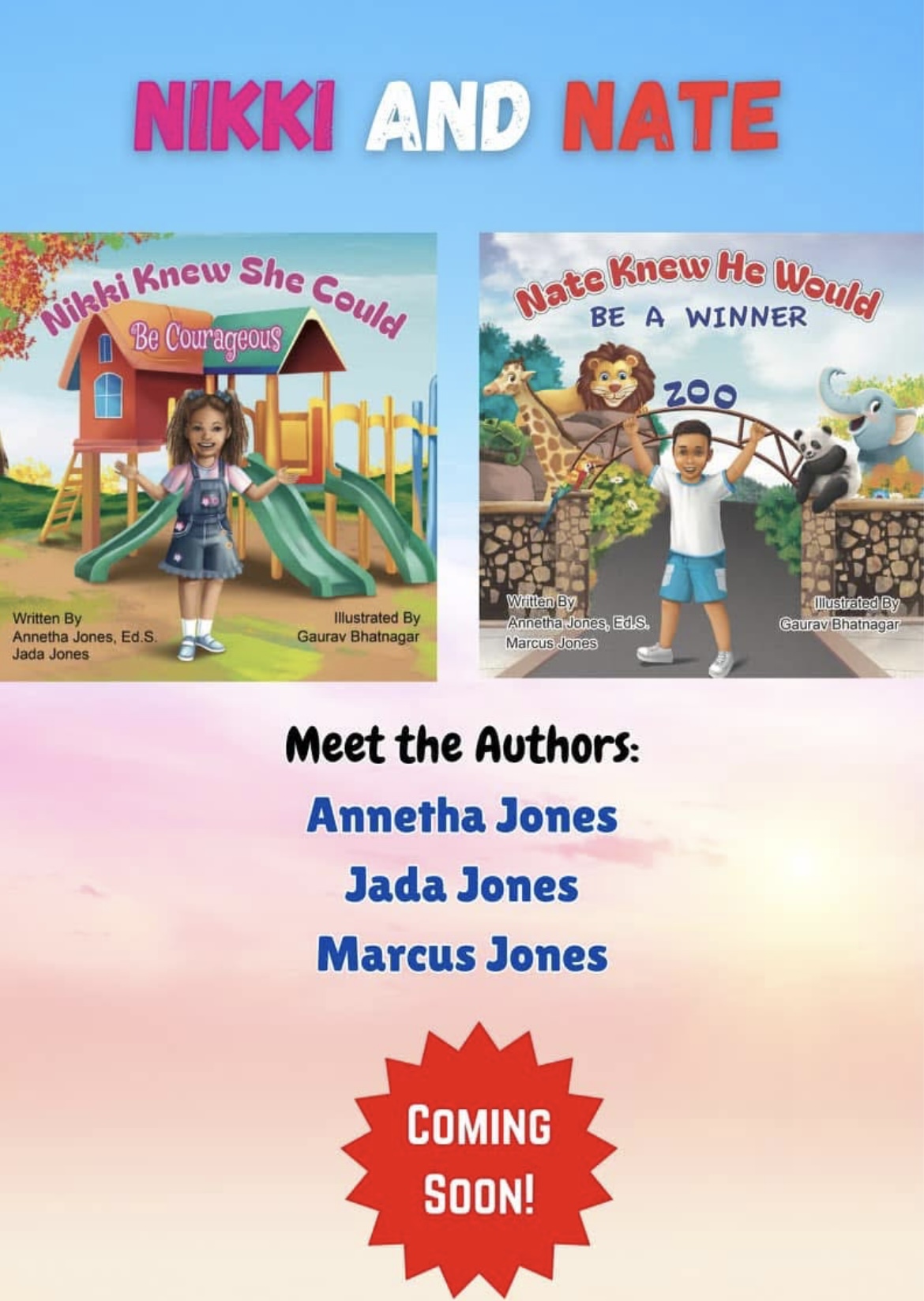 I am excited to announce my newest projects. I recently co-authored a children’s book titled: Nikki Knew She Could Be Courageous with my adult daughter, Jada. Additionally, I co-authored Nate Knew He Would Be A Winner with my adult son, Marcus. Our books were written to promote children’s literacy and to remind children to be brave, dream big and to believe in themselves. We expect to release our books over the next few months.