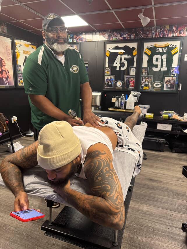 I’m not the best at doing interviews. But here’s a brief summary of my story. I was born in South Carolina. While in high school and college, I injured my back and was forced to stop playing football. While in school, I initially wanted to be an engineer, but within rehabilitation from my injury, I became to fall in love with the aspect of helping others that will help prevent injuries and help others when they become injured. Fast forward to over 20 years later, I still have love for the profession and still have a strong desire to help others and improve my craft. Today, my mindset still operates as an engineer with how detailed I work with my clients. Currently, I’m a sports performance specialist and soft tissue specialist where my office is in Smyrna, GA. When I am not in my office, I travel around the world to do treatment with clients who compete or perform in the NFL, NBA, WNBA, MLB, track and field, tennis, bobsled, actors/actresses, comedians, musicians, social media influencers, weekend warriors, and average everyday folks. I have been blessed to have grown so much within the profession to work with the level of clientele I have.