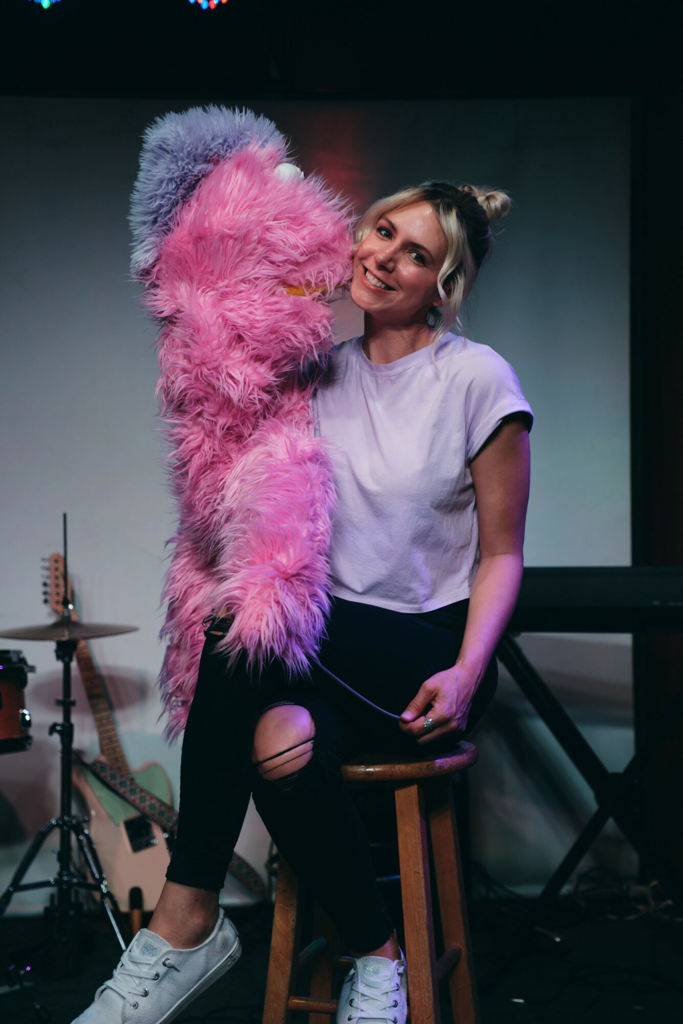 What am I known for? That’s a hard question, but I would say in the artistic community, The F Word improv & my character Sauria on Edgewood Avenue (a puppet variety show). I’m the pink one!