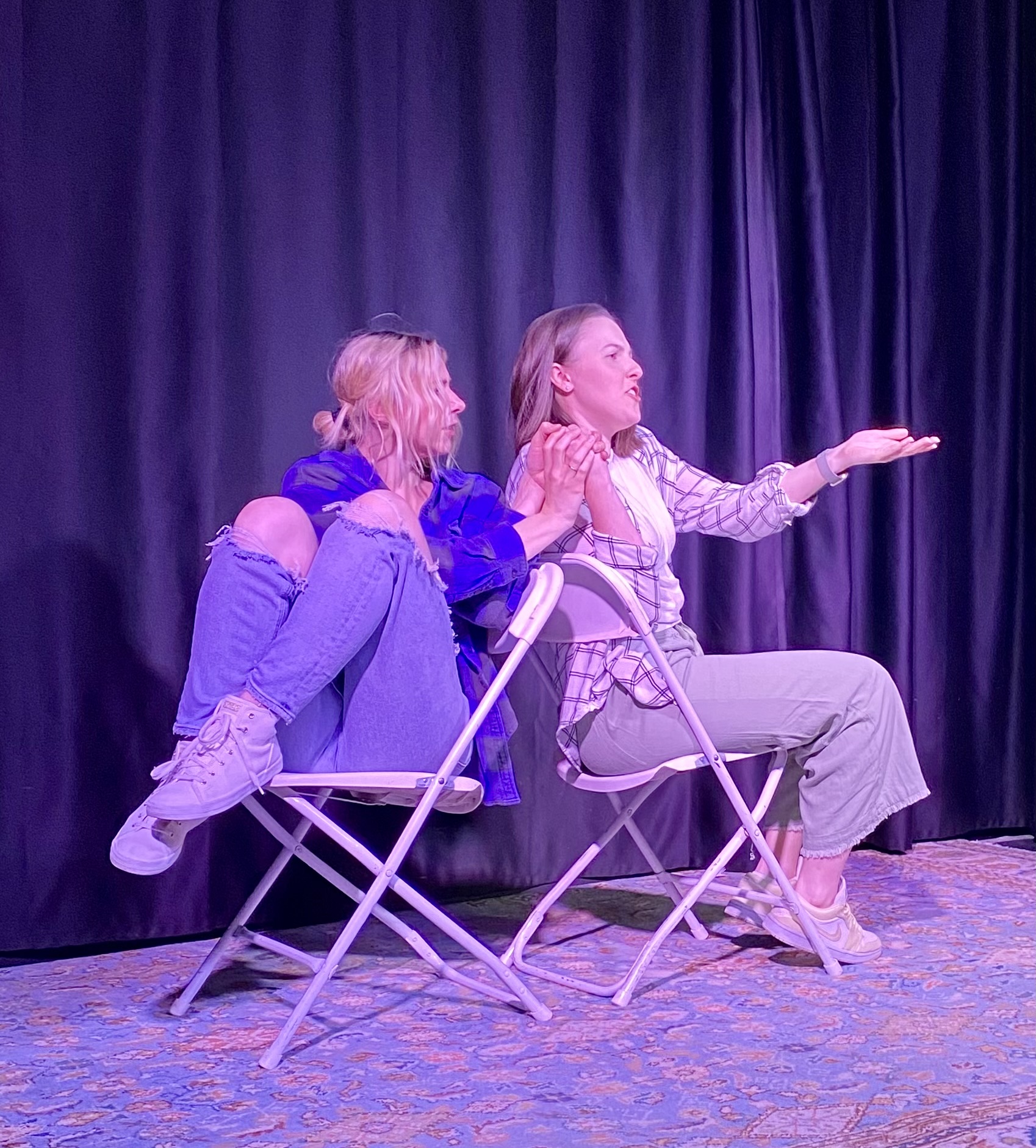 Honestly, once I got past that voice I am sure we all hear in our heads “why you, you’re not good enough, would anyone care, would anyone want to play on this show?,” it was magic from there. I spent way too much time contemplating and actually was too scared to continue, but then it felt like the universe stepped in. I had been talking about starting The F Word with my friends, seeking advice from fellow improvisers that I deeply admired, and then an opportunity reached out to me. Madeline Evans (creator of Road Trip improv) recommended The F Word for an All Women in Comedy night (hosted by LTT improv). That was it, we had our first show. It was one of the funnest sets I have ever played in. I still remember looking out in the audience to see so many familiar faces, across all identities. Since then, there has been so much support and love. Even though we are an all women cast, the support has consistently come from all humans, universal, and that has meant everything. This show is for everyone. Everyone that wants to laugh and support one another. It’s been a beautiful journey,