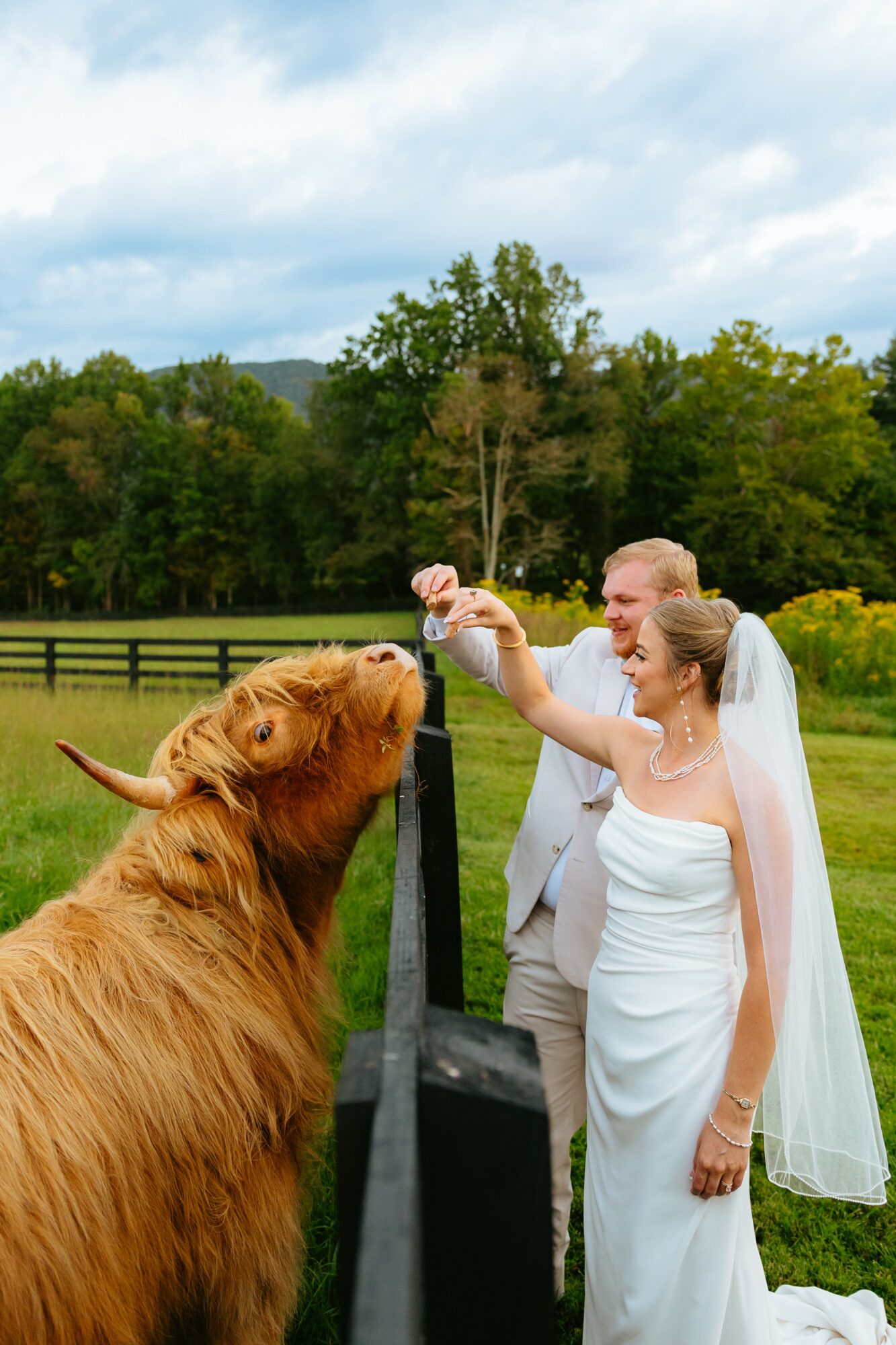 One of our biggest obstacles has been the growing number of venues in the North Georgia/Carolina corridor. Keeping the venue interesting and competing with those around us has been an ongoing challenge. We decided to compliment our beautiful panoramic Mountain View with registered Scottish Highland Cows which has become our second business venture. The brides and even grooms along with the guests absolutely love seeing these docile creatures and being given the opportunity to interact with them. We have totally fallen in love with these animals and the joy they bring us and those who get to see them up close and personal.