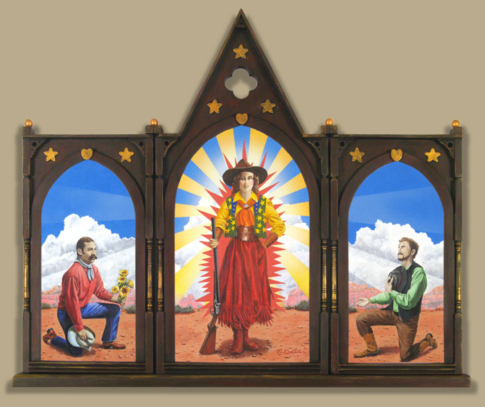 A 1995 trip to art-filled Santa Fe, New Mexico, awakened my childhood love of all things western. The art of various cultures out there (Hispanic, Native American) along with the romanticized depictions of the old west lit a fire under me and I began to paint western themed work almost exclusively. I’ve returned to southwest many times, mostly to New Mexico and Arizona to fuel my creativity and inspiration.