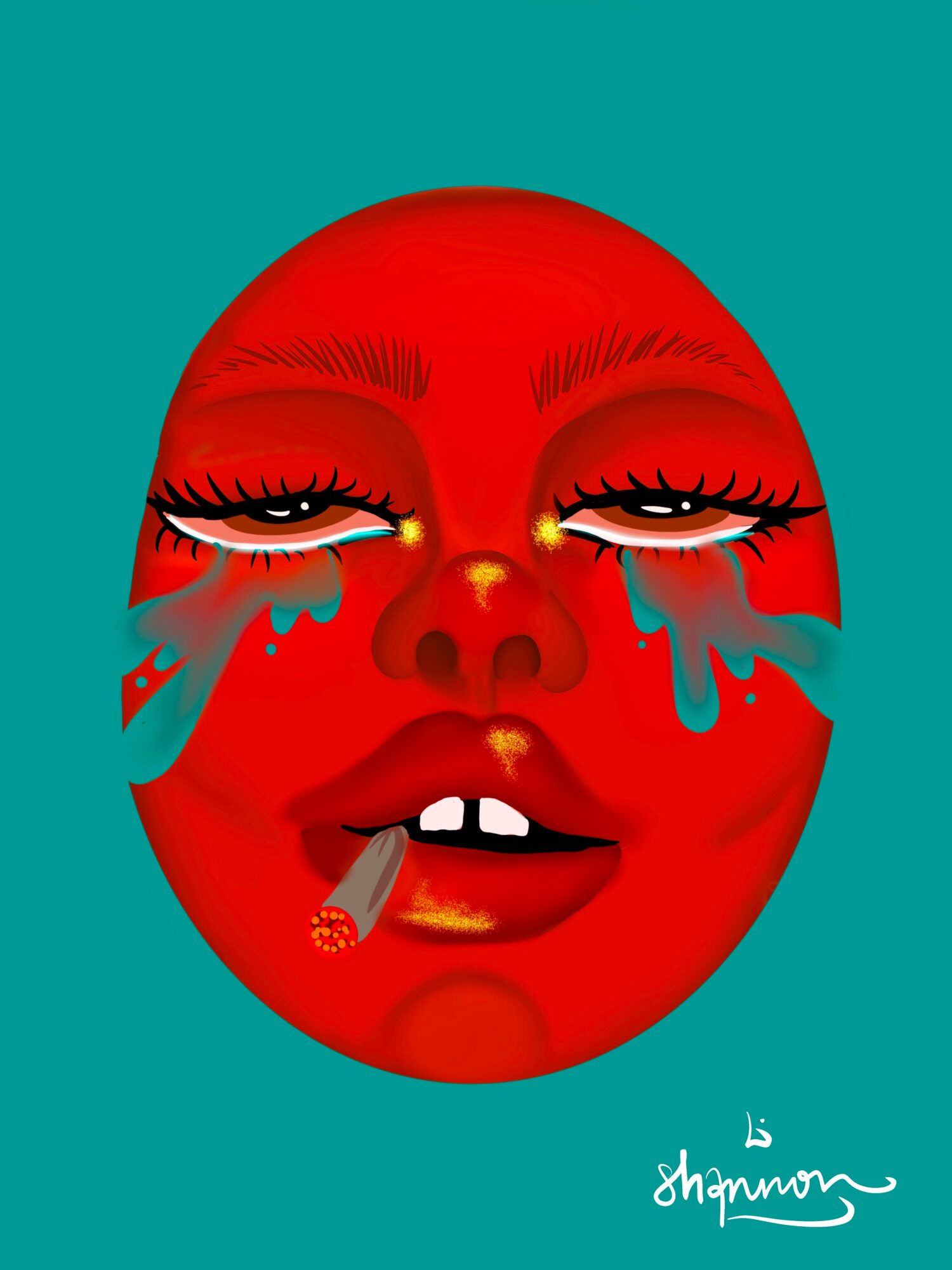 I carry the weight of my childhood with me, and traces of it live in my pieces. Through heartbreak and growth, my style emerged naturally. Viewers often notice the recurring eyes, watchful, expressive, and grounded. They have become a signature in my work, a personal symbol and a quiet declaration of presence. A way of saying I was here, and I felt deeply.