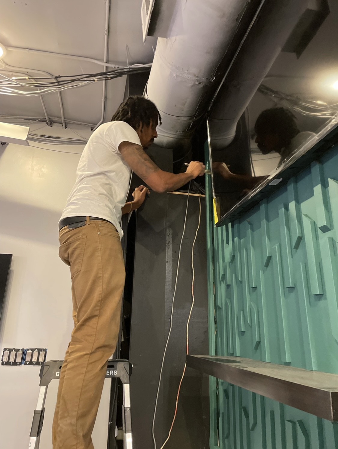 I quickly realized that I needed help with all the demand for work, plus I still had a full-time job with a startup that needed lots of my time and attention. This is when I partnered up with Darius, who is a wedding and event DJ that saw a slow down in work due to the pandemic. Darius would assist me on jobs and scheduling and I taught him the trade. We made business cards and began handing them out at hardware stores, banks, grocery stores, and everywhere else we frequented when we had to go out. I figured I might as well see how far I could take things and began filing paperwork to turn my side gig into an actual commercial business. At the end of 2020, we became a G.M. LLC and conduct business as 404/ATL Handyman.