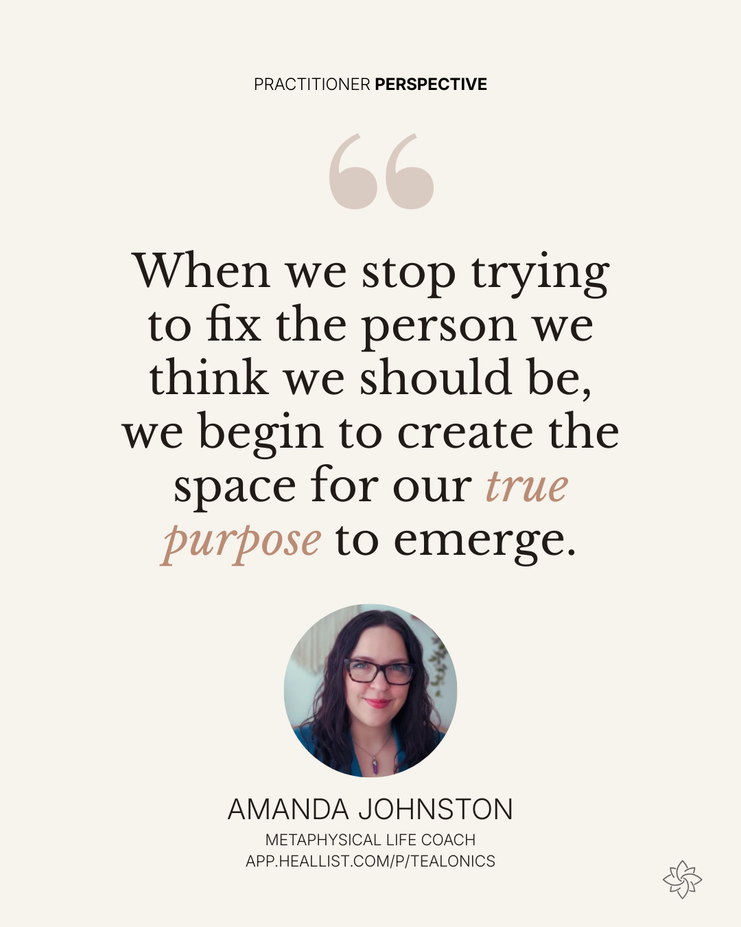 Why the TealOnics Method? This is going to attract people who seek something different than what’s out there because I don’t use personality tests. I use a unique app that looks at a person’s date of birth and birth name to identify their energetic profile that includes, their potential purpose, challenge points which are the things that will present as things to overcome for learning, and personality traits. The “Life Alignment Blueprint” encompasses, careers that fit, as well as helps me see what chakra blockages the client is likely struggling with and then I can also leverage the power of harmonics and virtual life coaching sessions where we partner together on the goals that are most important for my client.