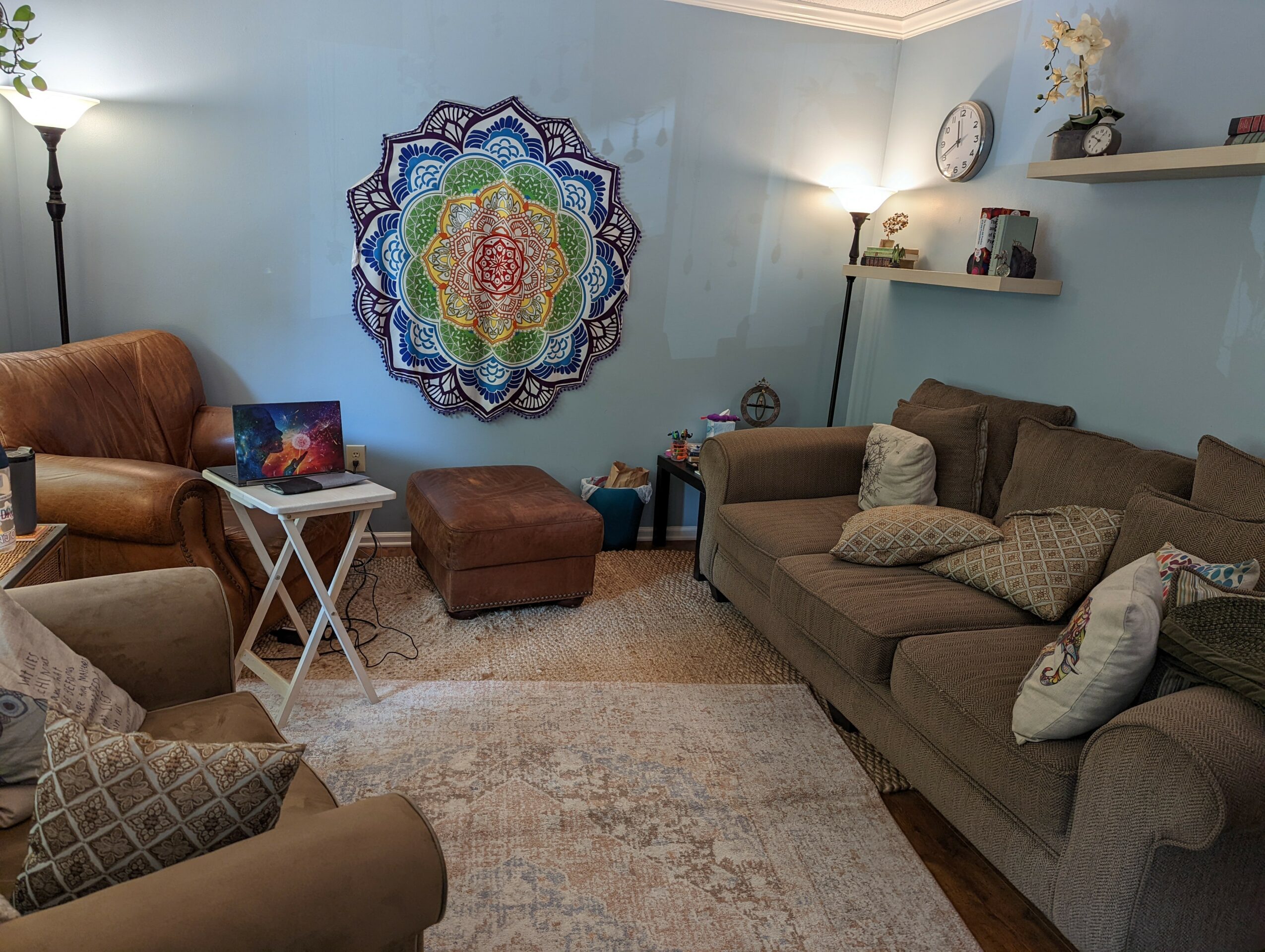 It has definitely not been a smooth road. Getting the education and experience to be a licensed counselor requires a lot of time and money so I needed to have significant determination. The licensing process creates obstacles for anyone who isn’t privileged with an abundance of financial support from either their family or a life partner. Thankfully, my parents believed in my goals and have supported my work my whole life. Honestly, it’s still not a smooth road. Pain and struggle is inevitable, as is change. COVID-19 was a significantly traumatizing event for everyone, my clients especially. Chronically ill and pained folks felt worse after catching COVID, being locked in at home with partners or parents who are not affirming lead to a lot of heartache and now the struggling economy has affected so many people’s mental health and resources. Many clients have had to reduce their frequency and their rate so some months it’s difficult to meet all the bills. A couple years ago I had my own experience with an autoimmune condition causing debilitating pain on a daily basis. Thankfully I found the right doctor and got access to life changing medications and body work treatments that virtually eliminated my pain. There was a time in my life when I thought I would be disabled and suffering for the rest of my life. I still remember those days and empathize with anyone experiencing chronic pain or emotional anguish to that degree.