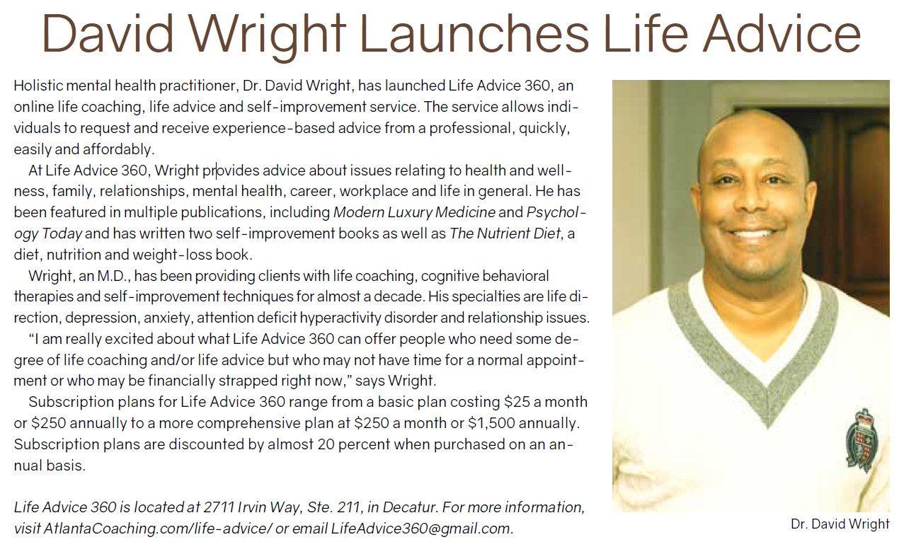 Dr. David has offices conveniently located in Sandy Springs/Roswell (1010 Huntcliff) and Buckhead (Piedmont Center), and he has been featured in As featured in Psychology Today, Doximity, The Atlantan Magazine, Jezebel Magazine, Modern Luxury Medicine + Doctors Magazine, Blue Ink Book Reviews, Clarion Book Reviews, Yahoo Finance, Google Business, Fitness Trainer Magazine, Chapters Books, Blackwells Books, and iHeartRadio. Dr. David has also partnered with community organizations such as CHAMPS (Community Health And Mens Promotional Summit)(Dr. Millard J. Collier, Jr.), The Ryan White Foundation, The Ryan Cameron Foundation, The Queen of Hearts Foundation, Clayton County Magnet Schools, Transformational Living Wellness Lifestyle—TLWL (Nina Norstrom), Inc., and Brewing Resilience/The Resilience Hub (Sydnee Floyd, RN), among others.