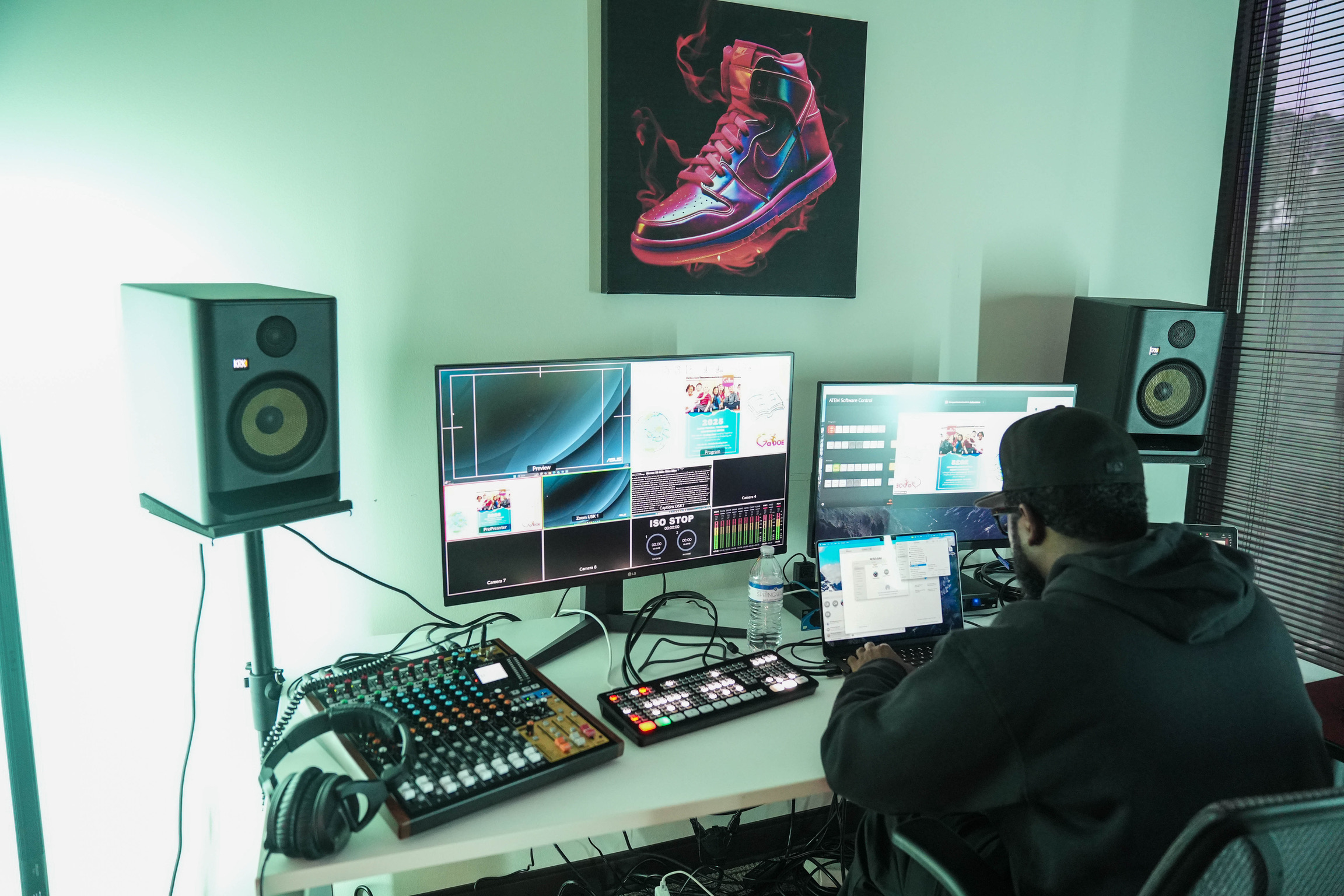 Around 2010, when I graduated college, the music industry went through a major shift. With the advancement of streaming technology and the power of the internet, business models changed fast — studios closed, labels consolidated, A&R jobs went away, and recording budgets shrunk. A lot of us had to expand our horizons. For me, it was a natural, parallel move into live event production, especially since I kept honing my skills running sound at different churches.