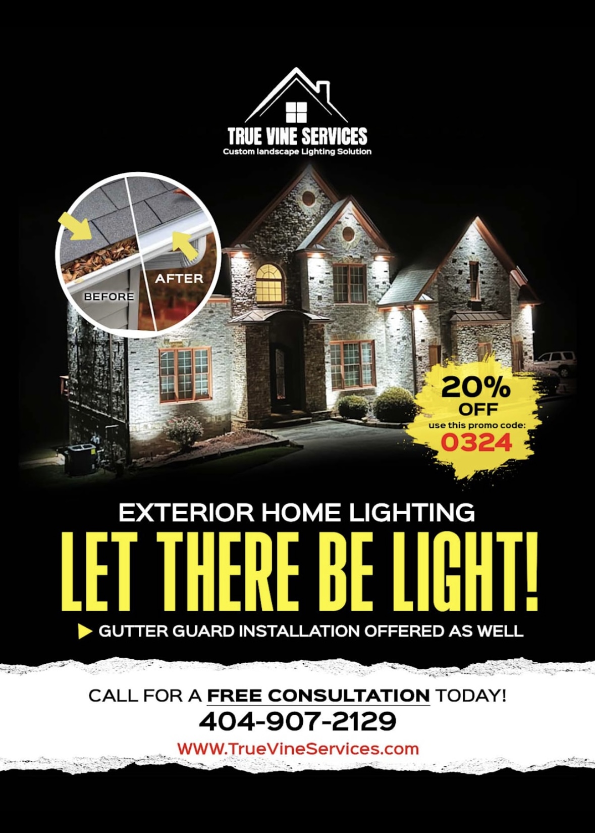 In addition to exterior lighting, we also offer Gutter Guard installations and custom accent wall designs, allowing us to provide even more ways for homeowners to improve both the beauty and functionality of their spaces.