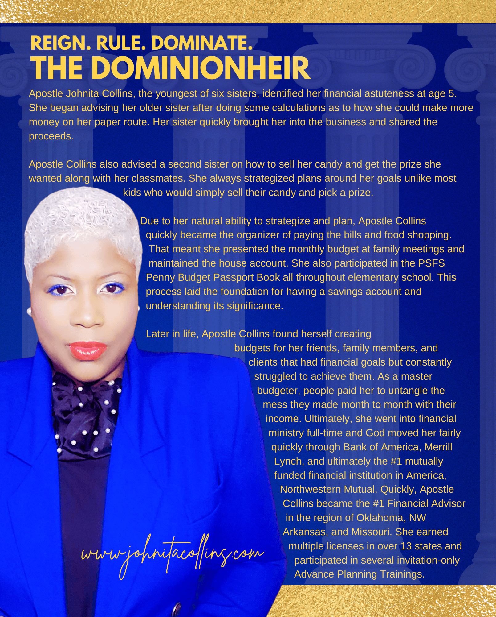 I am the author of The DominionHeir Planner, a tool designed to set people on the path of wealth. I also developed The DominionHeir Financial Dominion Program, which equips individuals and families for wealth and legacy building.