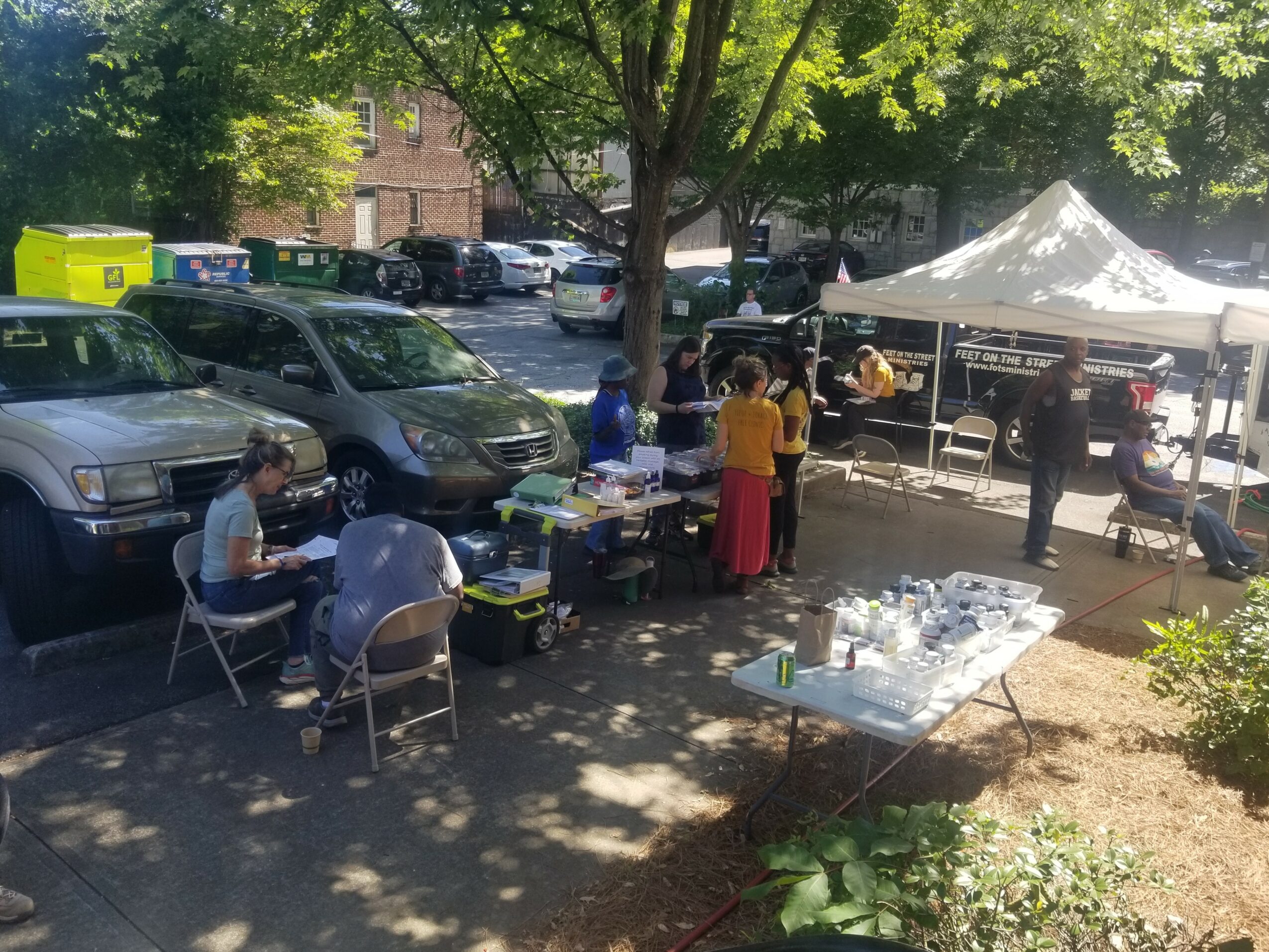 The Fleur and Forage Free Clinic is a 501c3 that focuses on providing free and holistic services to people who experience homelessness. We are a group of volunteers from different walks of life with a passion for herbal medicine and holistic care. We currently set up at four different locations each month: three locations in Atlanta and one location in Athens. We go to churches and other places where folks already come for food and community resources. We currently offer herbal consultations, herbal tea, reiki, chair massage and acupuncture.