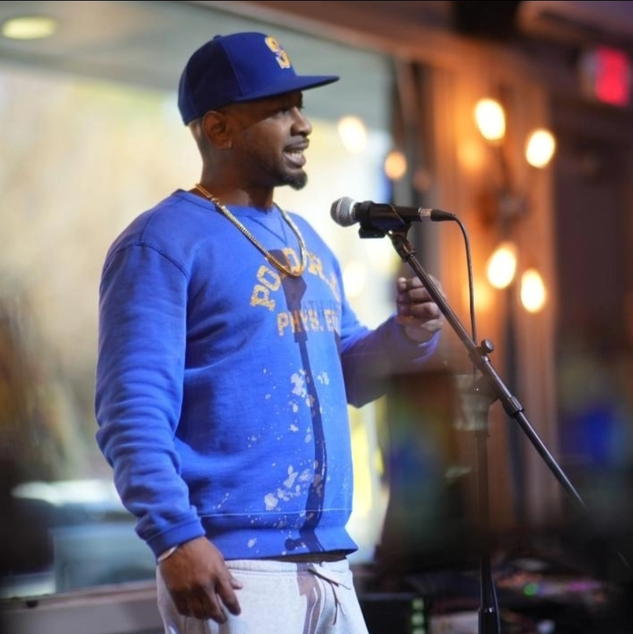 Hell nah, I had no teachers in this thing. I was self taught,and unorthodox. At 23, I joined the Navy in a random decision toward betterment, and crossed my fingers they wouldn’t find out about my warrant. They didn’t and I continued to write often. In 2013, at age 29, I got out the Navy, self-published my first book, “My Book of Rhymes”, and moved to Athens, GA. I had never performed poetry before, but I figured nobody would know I had a book if I didn’t get on a stage. For 6 months I drove 3 hours round-trip from Athens to Apache Cafe (Spring and 3rd location) Every Sunday. I fell in love with the energy and the crowd even though I had no clue what I was doing. The only thing I knew to do was to keep going. 6 months later I moved to Atlanta. I needed to be closer to that place. It became my second home. The hosts and crowd became friends. Poetry became my love. My poetry path started later than many, but I was all in.
