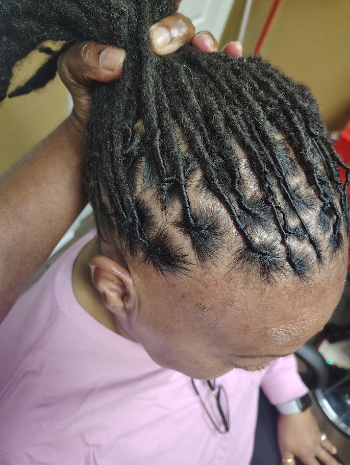 I am a certified natural stylist. I specialize in locs and natural state of hair, with a strong focus on maintaining the health and intergrity of your hair via you wellness.