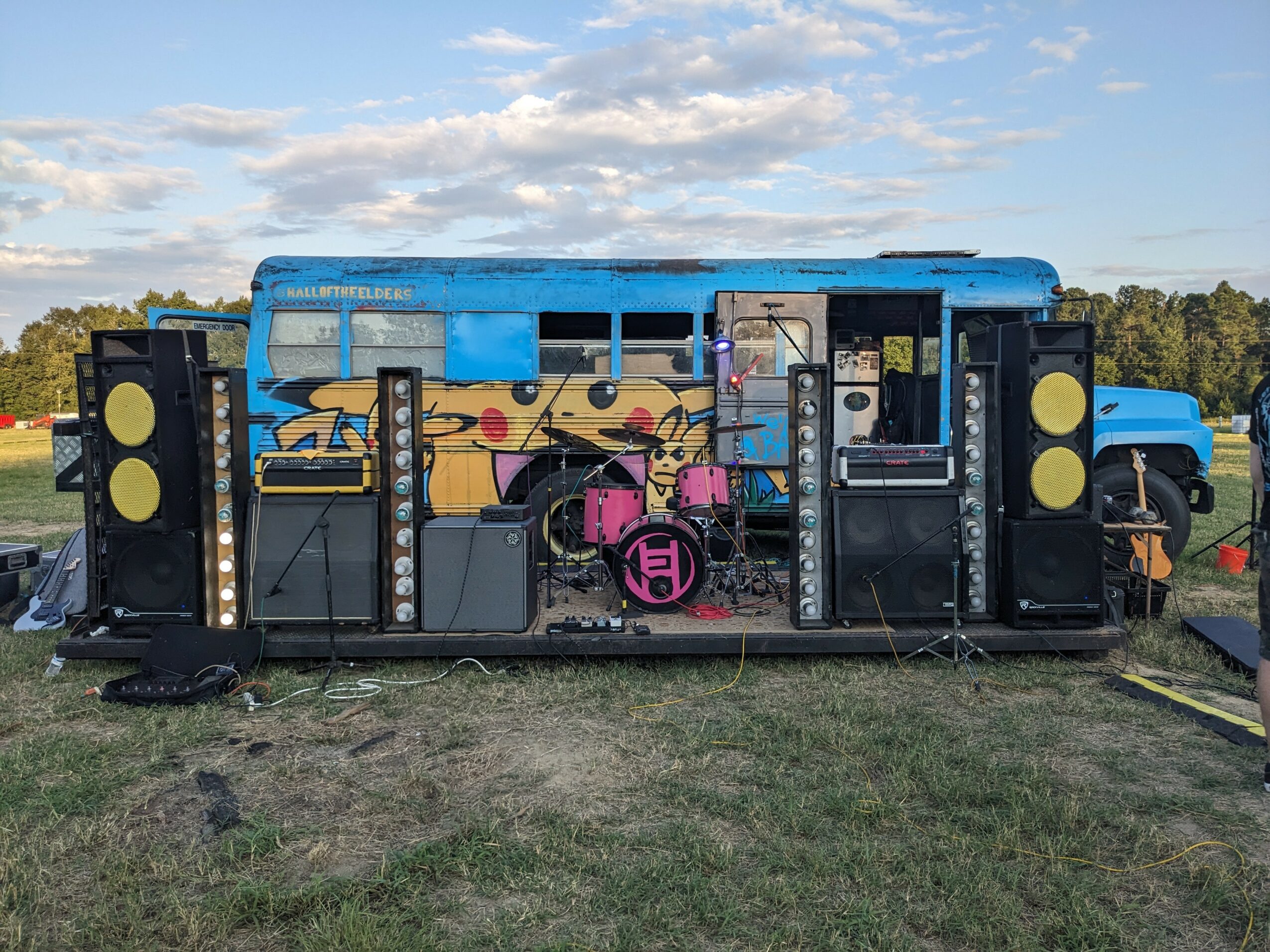 We are a band called HALL OF THE ELDERS that is reviving CRABCORE, one breakdown at a time. We tour in a school bus conversion as our tour bus and make lots of videos on our trips. We have converted the school bus into our home-away-from home ourselves. It carries all of our gear and sleeps 5. We also play internationally. Recently, we went to Indonesia and Japan for tour. It was an awesome experience. There are videos and documentaries that we have made on all of our trips uploaded to our YouTube channel.