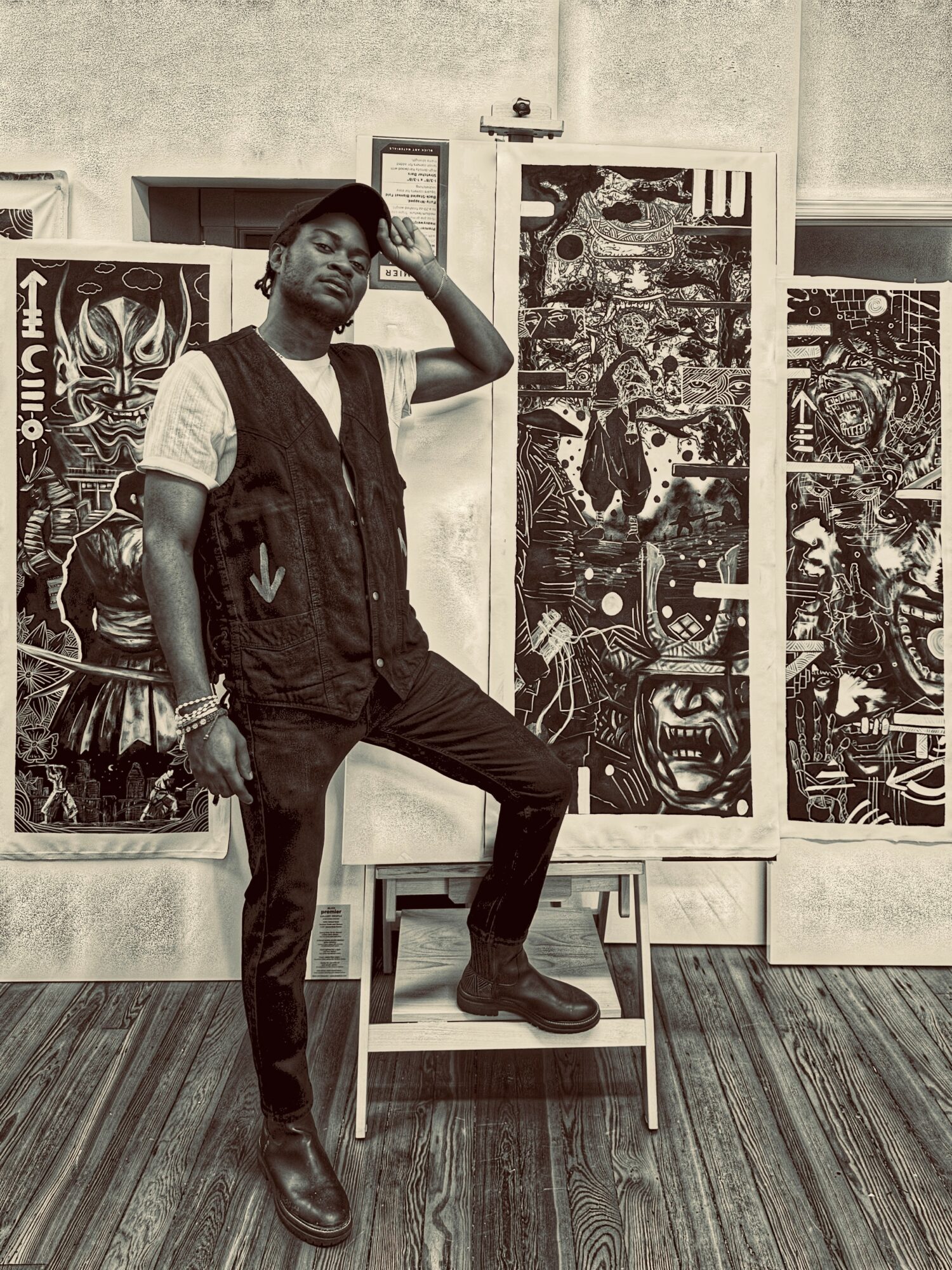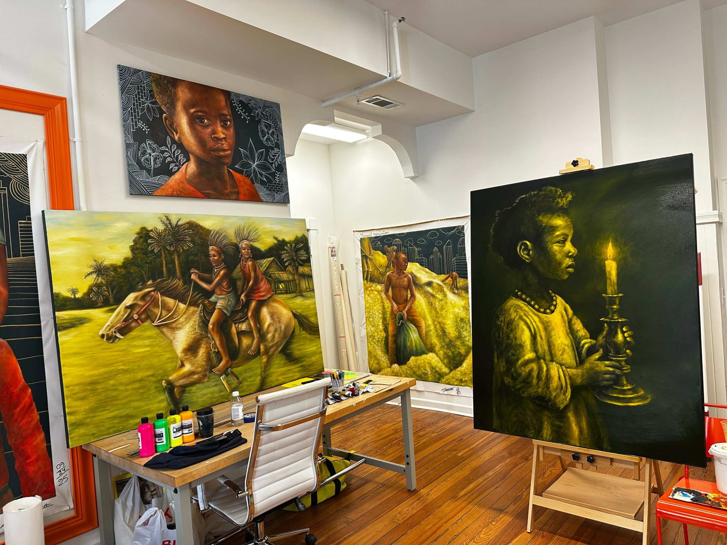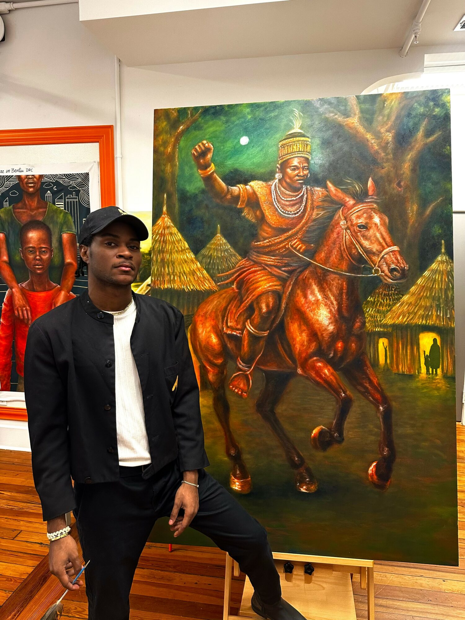 I am a Congolese fine artist and painter whose work blends vivid storytelling with cultural symbolism to reflect on the social and political realities of the Democratic Republic of the Congo. After earning my B.F.A. in Painting from SCAD Atlanta in 2022, I continued to refine my mixed-media practice, combining layers of acrylic and oil to merge personal experience with national identity. My inspiration comes from traditional Congolese masks, African warriors, arrows, and other cultural artifacts that embody the spirit and resilience of my homeland. As I develop a unique abstract style featuring fluorescent colors and dark backgrounds, my goal is to raise awareness about the ongoing struggles in the Congo while honoring its rich heritage through a visually powerful and expressive medium.