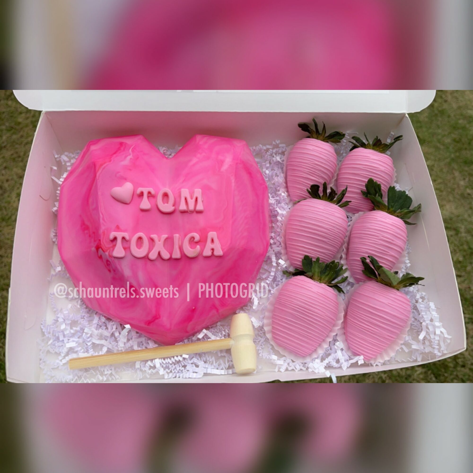honestly , it wasn’t my intentions on starting a full blown sweets business. my VERY first time dipping strawberries was for my aunts birthday. i had little to no knowledge of dipping sweets even though i did culinary my entire 4 yrs of high school 2 of them being at technical college. just because we worked more on the savory gourmet side of the kitchen. but i knew i wanted to do something nice for my aunt so i dipped wet strawberries in warm chocolate, not knowing the chocolate would seize up on me. even though they looked ugly , i kept going , slapped some pearl sprinkles on them & put them in OVERSIZED cupcake liners . so just imagine small , ugly strawberries in cupcake liners that are too big . but from there i just became determined to perfect my craft & once i mastered that , i set out to dip other things . then i got bored just dipping , so i called my grandma for my great grandmas recipe book & from there i started baking things bigger than chocolate covered treats .
