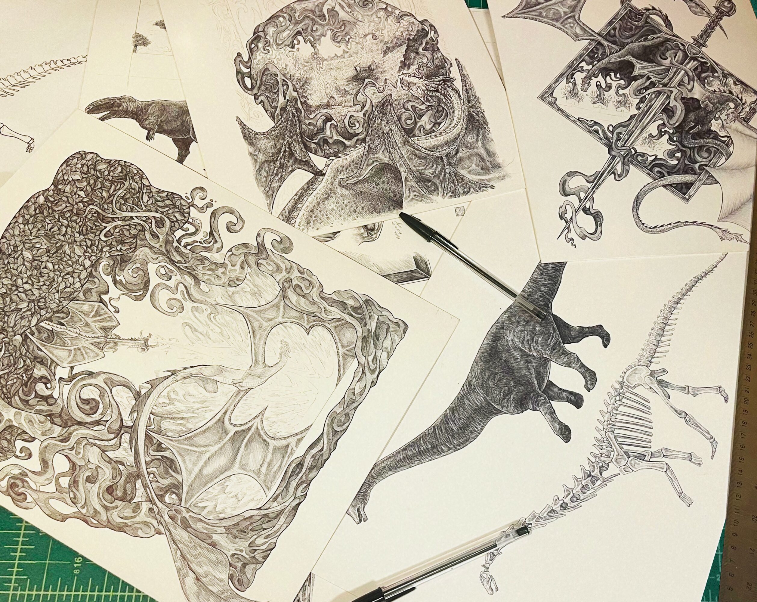 I’m an illustrator and designer. I’m more known for my illustration work, which is characterized my texture, intricate detail, organic shapes, and often fantastical flora and fauna. I feel that the way I illustrate sets me apart, as I haven’t met many fellow artists with a similar process: I plan my compositions and colors digitally, then transfer the layout to illustration board and render everything in ballpoint pen. Then, I scan it and add color digitally. I work this way because I enjoy the technique of ballpoint, and I love the feeling of completing a physical piece of artwork. Additionally, the texture that ballpoint creates is very unique, and I haven’t found another way to replicate it.