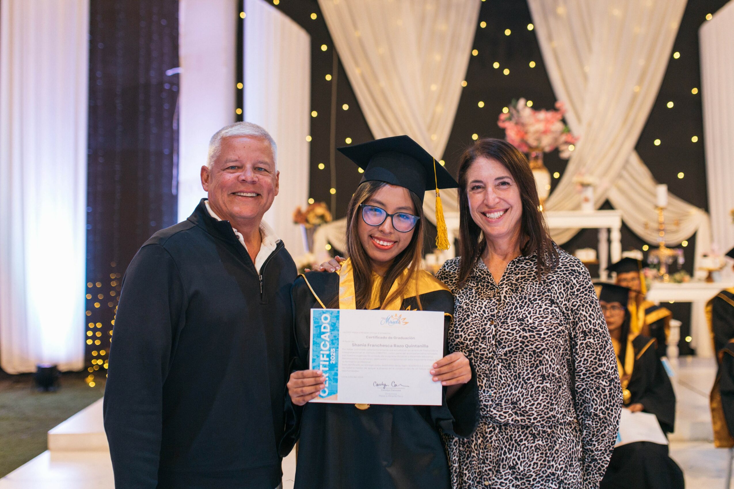 I took all the photos that I am not in! Jose, a Make a Miracle graduate, took the rest. The photo of me with the braids is from my first trip in 2016. The photo of the man and wife with the graduate is of our co-founders Jack and Carolyn Canouse. Jack Canouse is also a managing partner of Stars and Strikes.