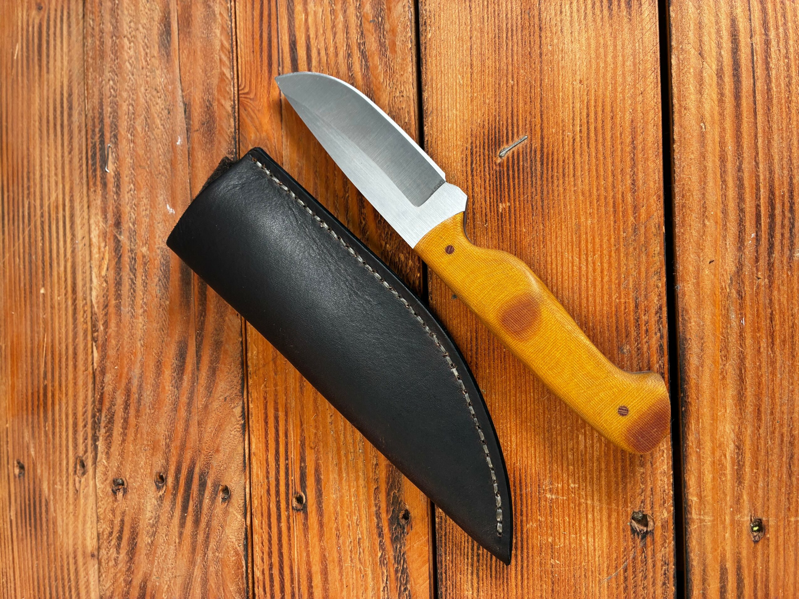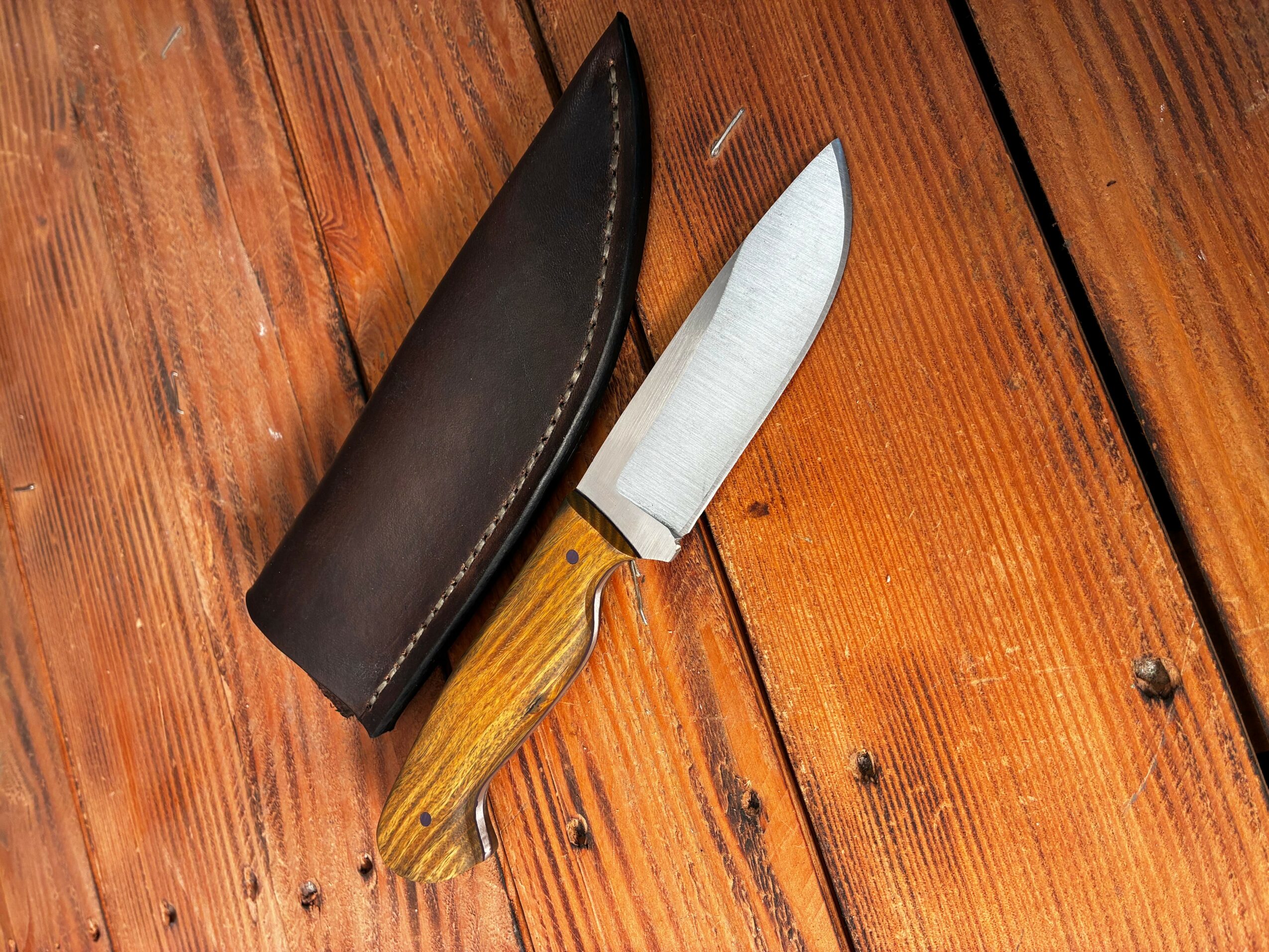 I began in 2022 as Jester Leather, making custom sheaths for customers out of the store where I worked. Later, I rebranded to Jester Knifeworks, and by 2025, I felt I had knives worthy of presentation — ground, heat treated, handled, and sheathed entirely out of my home shop.