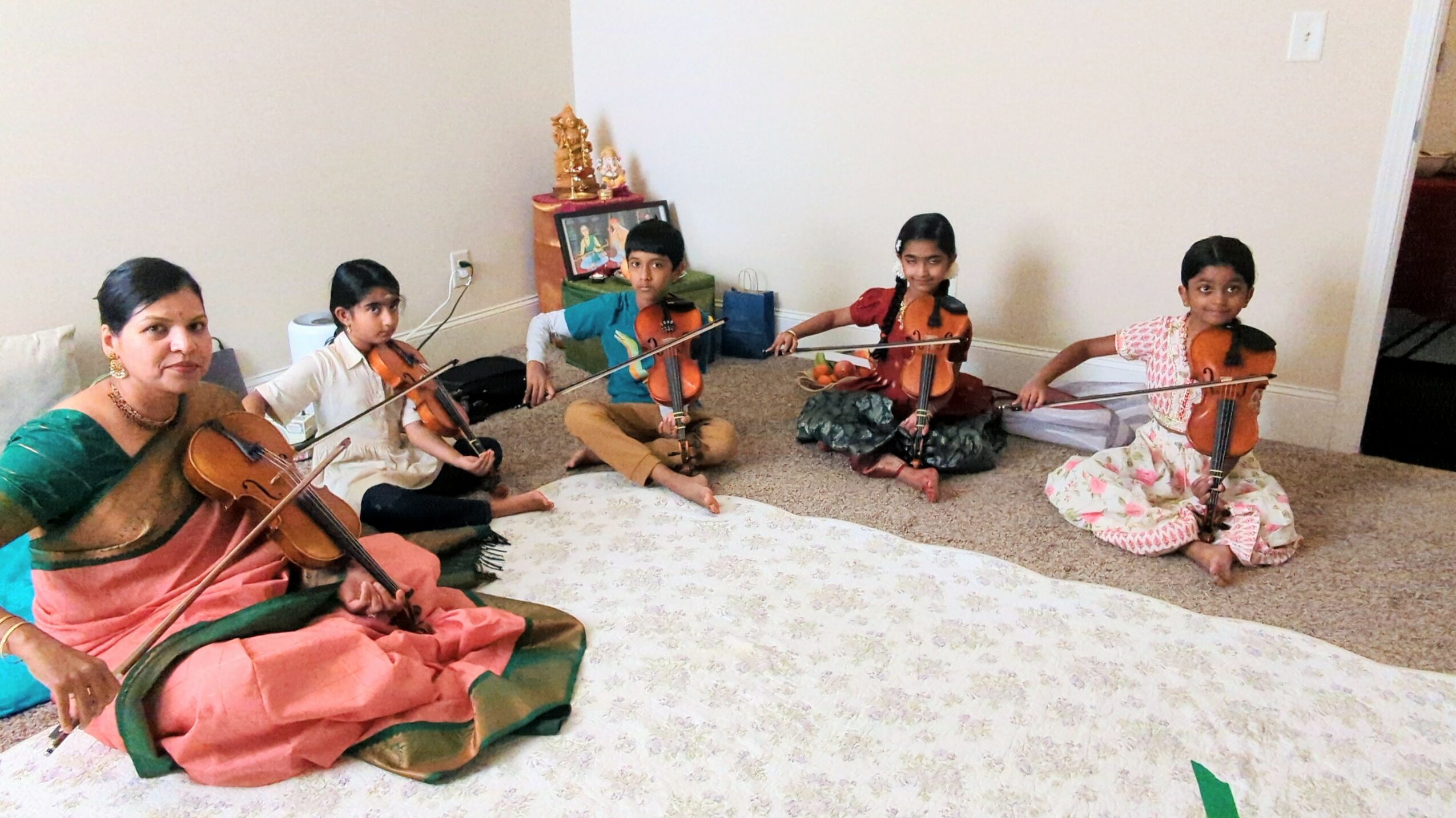 As my students grew and reached more advanced levels of training, I recognized the importance of continuing my own musical growth. I reached out to a professional violinist in India and began taking online lessons to refine and expand my skills. This step not only deepened my knowledge but also renewed my own love for learning. I continue to study and grow, so I can offer my students the highest quality of guidance and keep evolving as a musician and teacher.