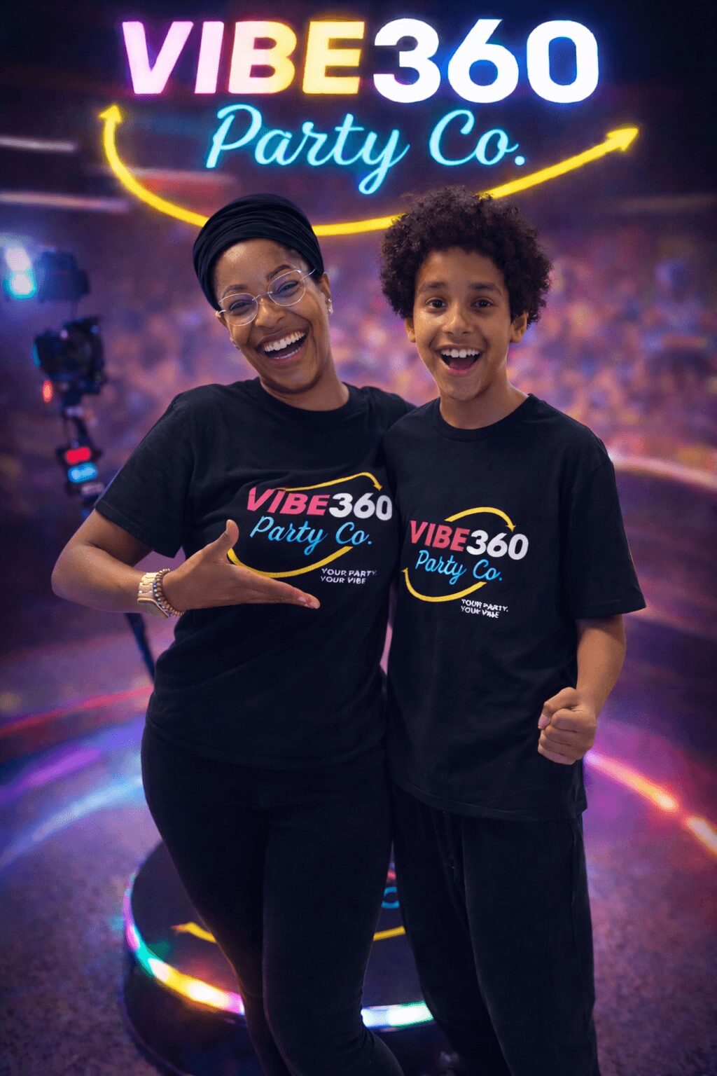 At Vibe360 Party Co., we specialize in creating high-energy, interactive experiences through our 360 photo booth and event rentals. Our goal is to bring a unique and memorable element to every event, whether it’s a school function, birthday celebration, corporate event, or community gathering.