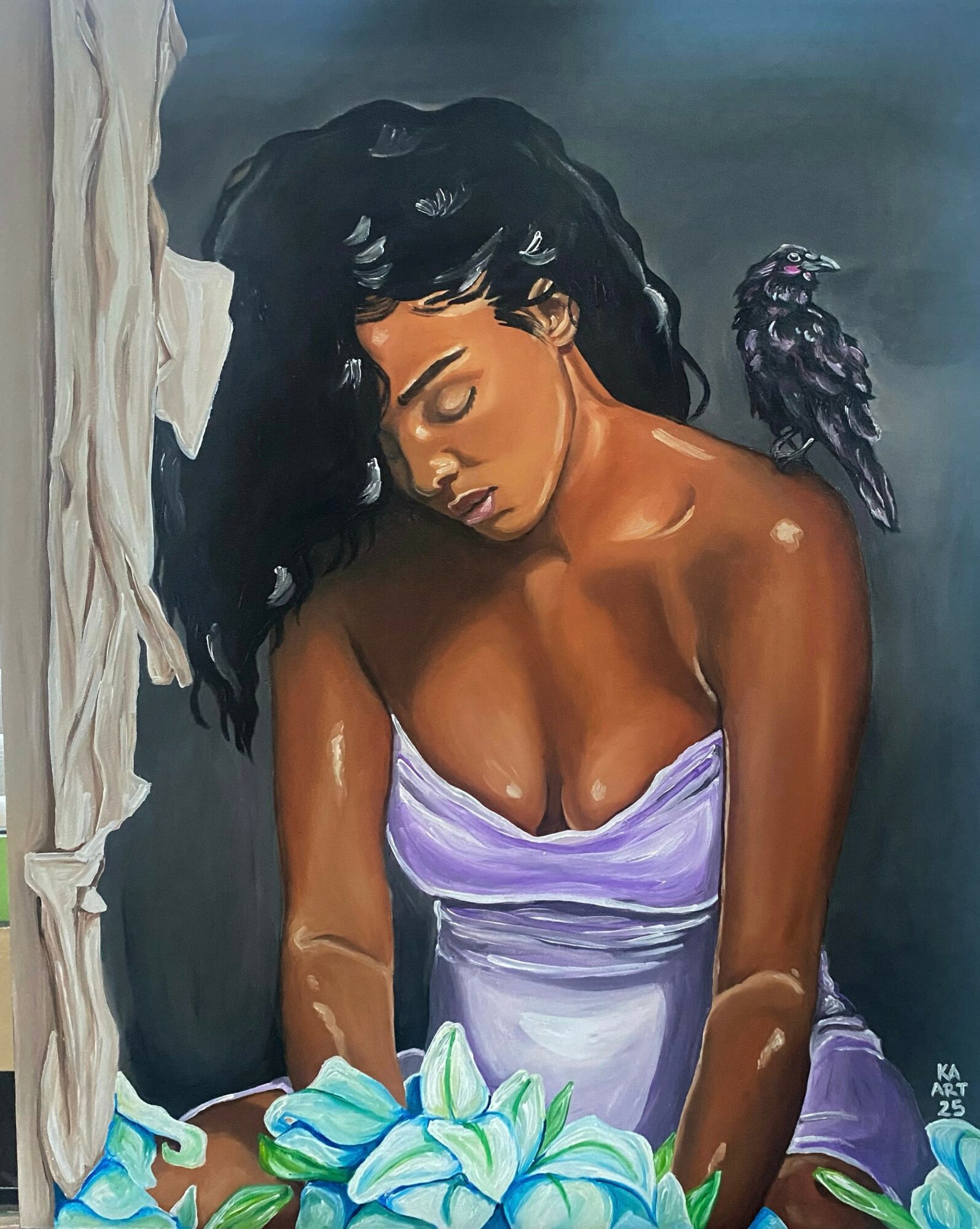 I’m known for my love of drawing people. I think we’re are the greatest masterpieces that have ever been made…and to think I can draw said masterpieces, makes me feel like I have some type of special power. I’ve been using charcoal and graphite since I can remember. I started using acrylic paints back in college, but it still didn’t give me what I was looking for in my paintings, so I added oil paints, so now I use them both when creating a piece. I also started painting digitally back in 2017, because it was something I wanted to master…now I love it as well. What I’m proud of the most about all of this is the support from my family and friends. If it wasn’t for them pushing and believing in me, I don’t think I would have the courage to try to pursue anything in it, it’ll be just another silly dream. I’m so happy that I did’t hear that or got discouraged from it. I think what sets me apart from others is that I put my very soul into everything I make. Every piece is about me in some form, even if I’m not the subject. I live and breathe art. It’s the only way I function.