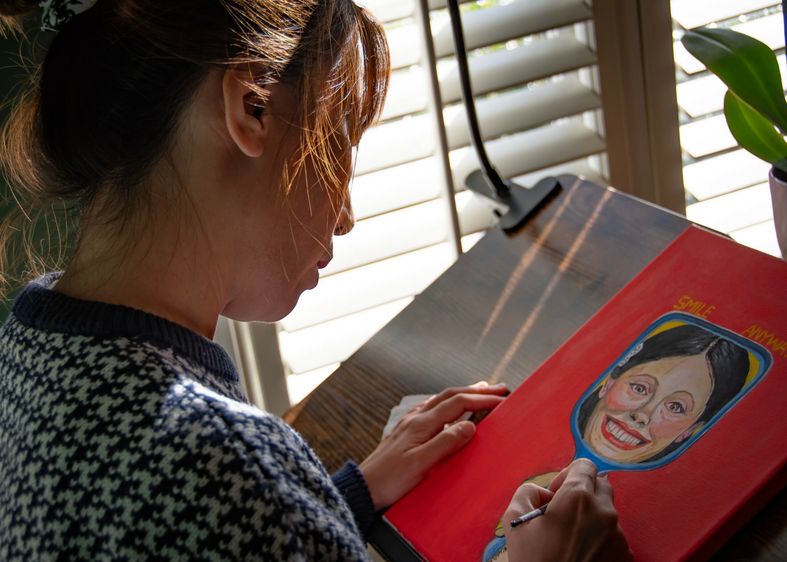 After a long period of preparation and self questioning, I launched my own branded art series called Second Self. Every piece in this series centers around a figure holding a mirror and confronting the reflection of their true self, because a mirror does not lie. The concept is deeply personal and also universal. Many of us perform one version of ourselves for the world while hiding another inside. Visually, the series leans into pop surrealism. It blends bold color, dreamlike symbolism, and emotional tension, while still carrying traces of my Asian visual roots.