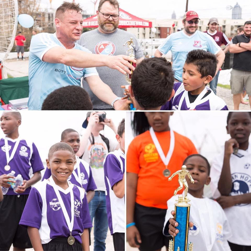 We teamed up with Soccer in the Streets (Sanjay Patel), and our local community center: The John Hope community center. That is when I met William Oliver who runs the Steamsportinc program at the John Hope Community Center, a free robotics program for under served kids in Atlanta. He introduced me to Ms. Linda Adams at the Vine City Community Center. Both centers had a youth soccer program with Soccer in the Streets and the CHAC started working with them providing hot dogs, drinks, snacks at their Saturday matches. We also lined the fields, acted as refs, and would come out and cheer the kids on.