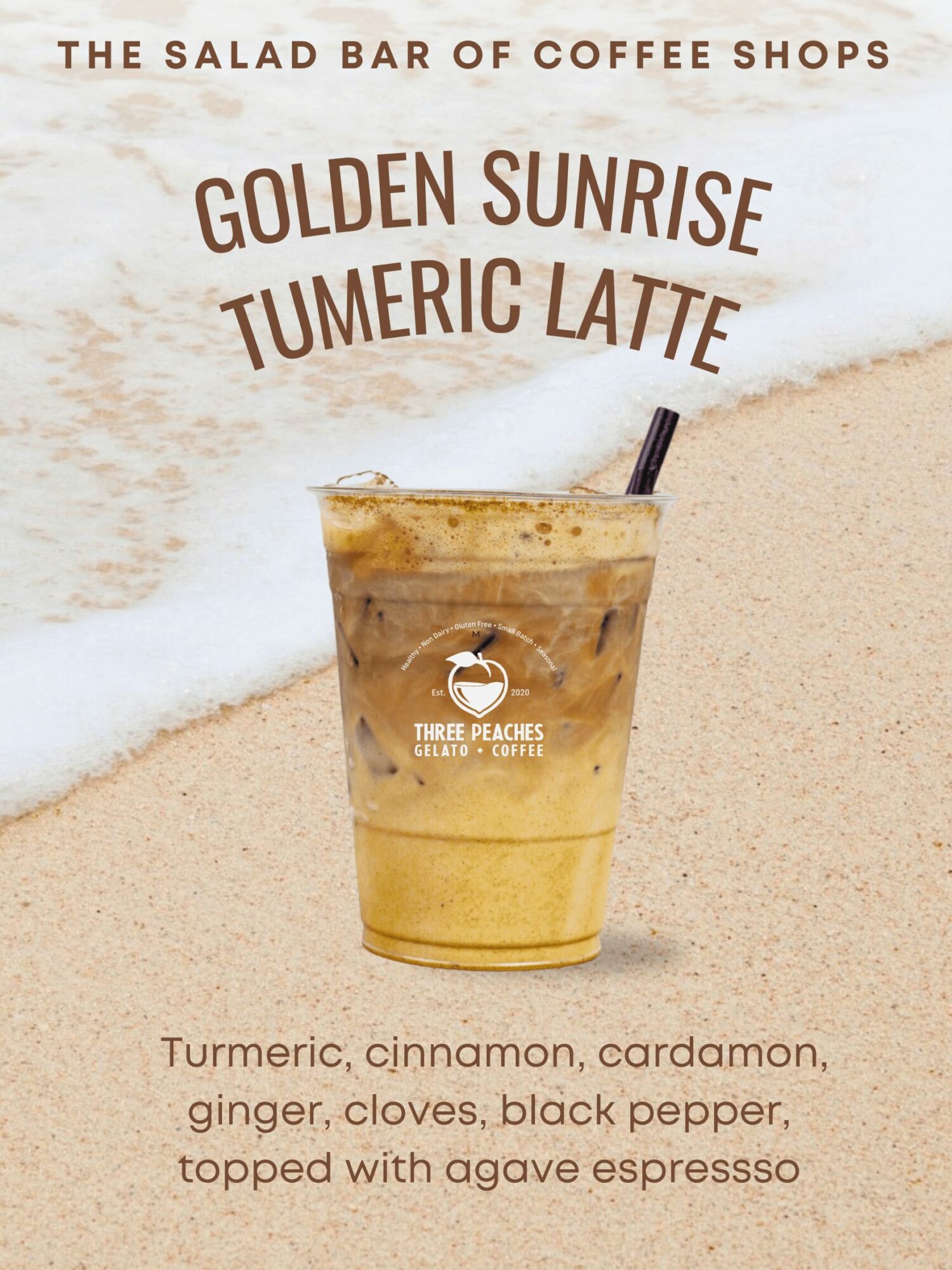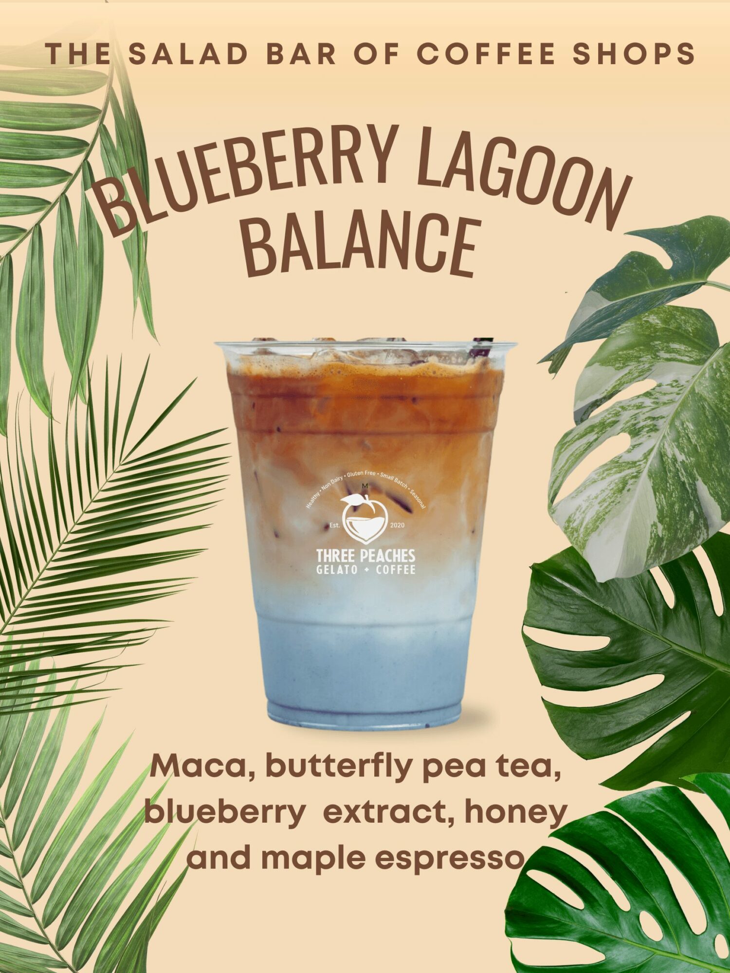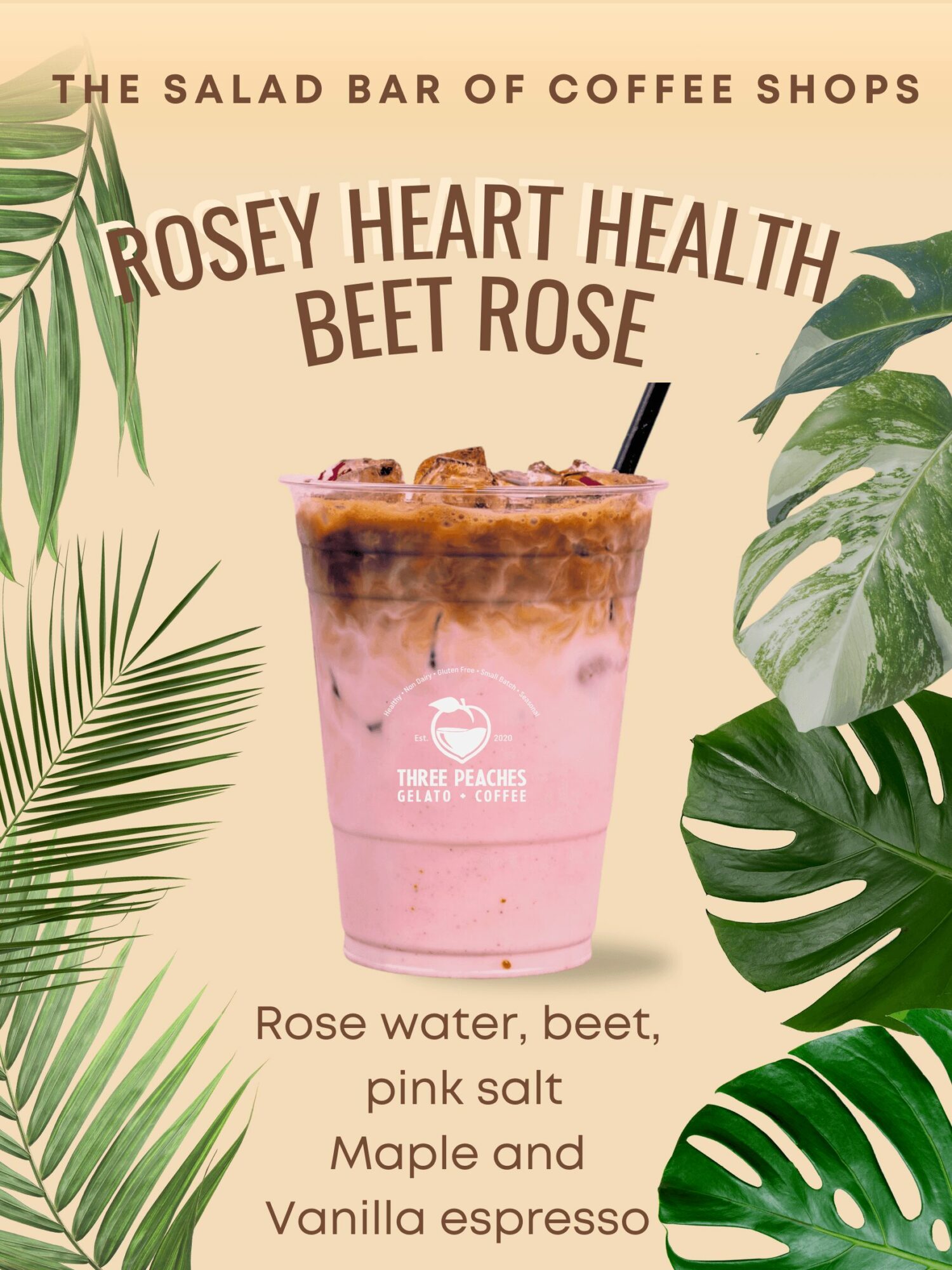 Three Peaches started with the goal of establishing a unique type of coffee shop. One that caters to people looking for a healthy twist on their coffee and deserts. Along with normal everyday coffee drinks we offer crafted lattes with ingredients like, Maca, Mushroom extracts, Beet powder, pink salt, raw cacao, butterfly pea and collagen to name a few.