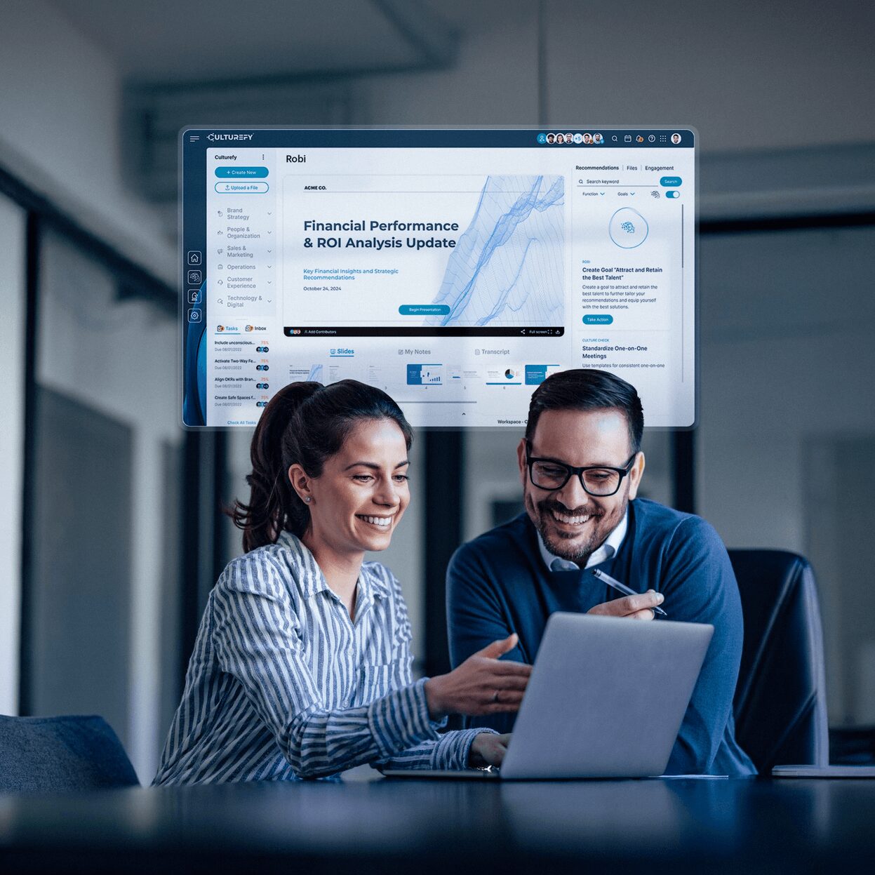 With Robi®, our built-in AI Consultant, leaders can uncover blind spots, receive evidence-based recommendations, and deploy AI Agents to take action—all within one seamless platform.