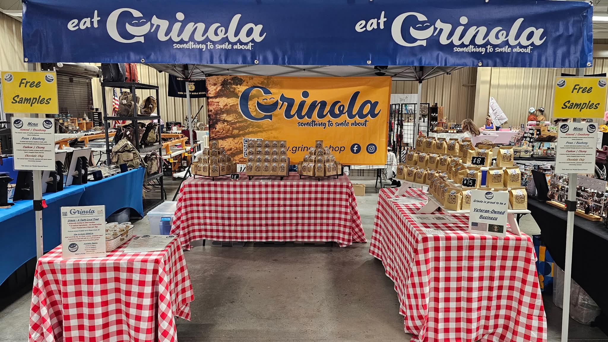 We have a robust online store (www.grinola,shop), we are available in a growing number of wonderful local retailers, and we’re still in the fun phase of attending festivals and markets to build our brand and introduce Grinola to our neighbors.