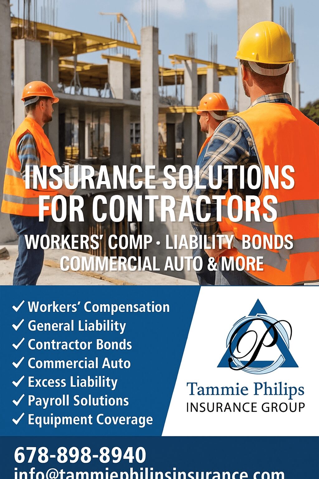 My company is an independent insurance brokerage that I built from the ground up over the last 20 years. We specialize in providing tailored insurance solutions for individuals, families, and businesses — with a particular expertise in general contractors, artisan contractors, workers’ compensation, general liability, bonds, commercial auto, payroll solutions, equipment coverage, and excess liability.