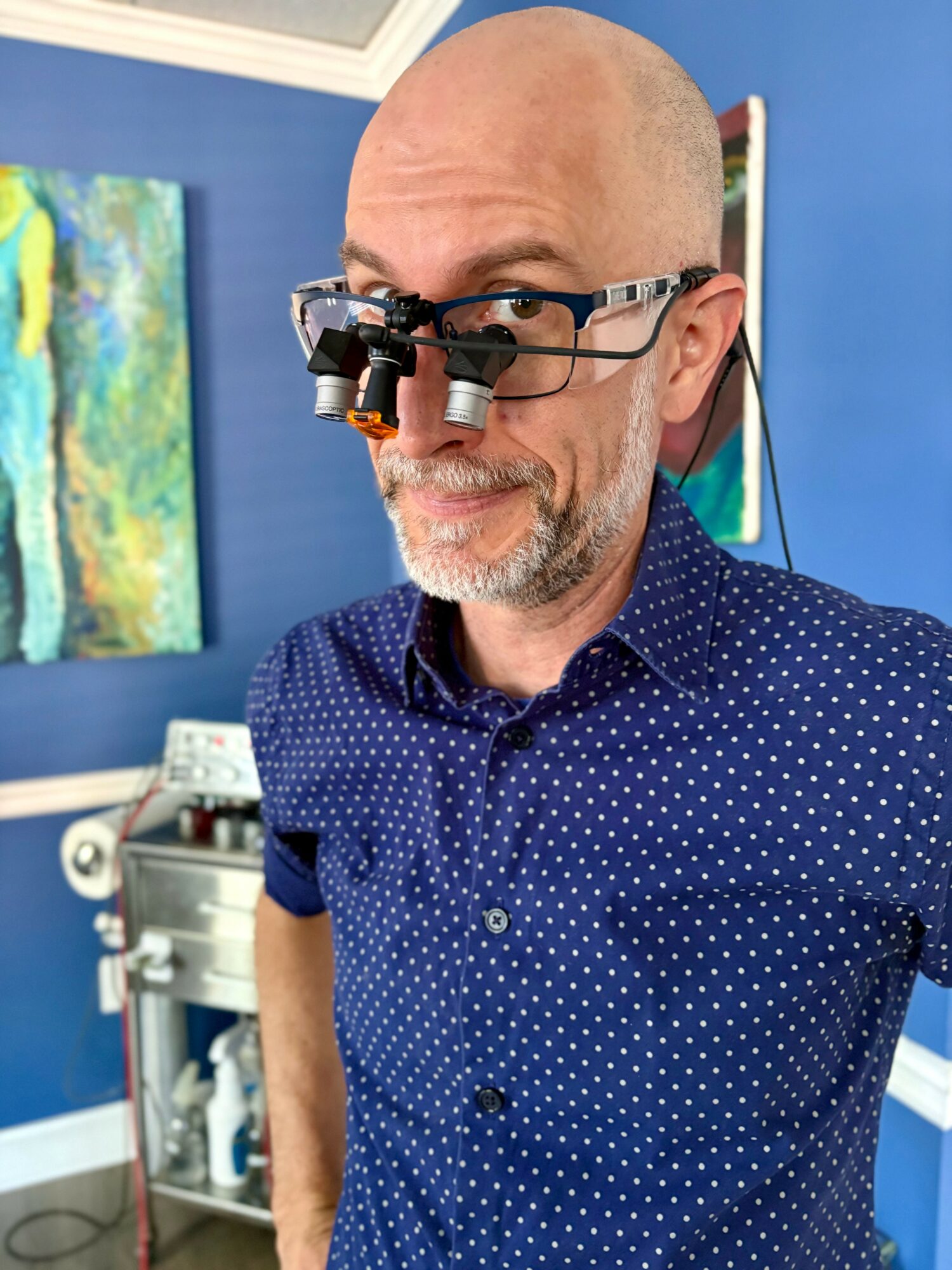 My goal is to always create a warm and inviting space. The process is not the most comfortable procedure; as such, I think it’s so important for the space to be soothing. Darker walls covered with beautiful art by my husband and other friends, allowing clients to choose the music we listen to during sessions, etc. I strive to make sure that the space does not feel clinical, but soothing.