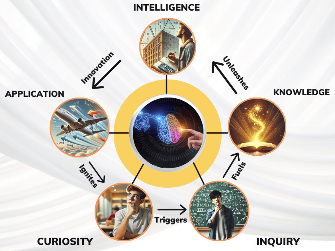 Curiosity → Inquiry → Knowledge → Application.