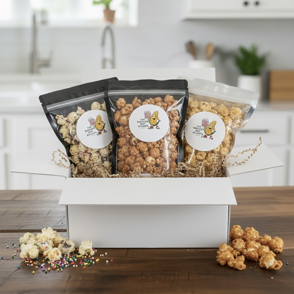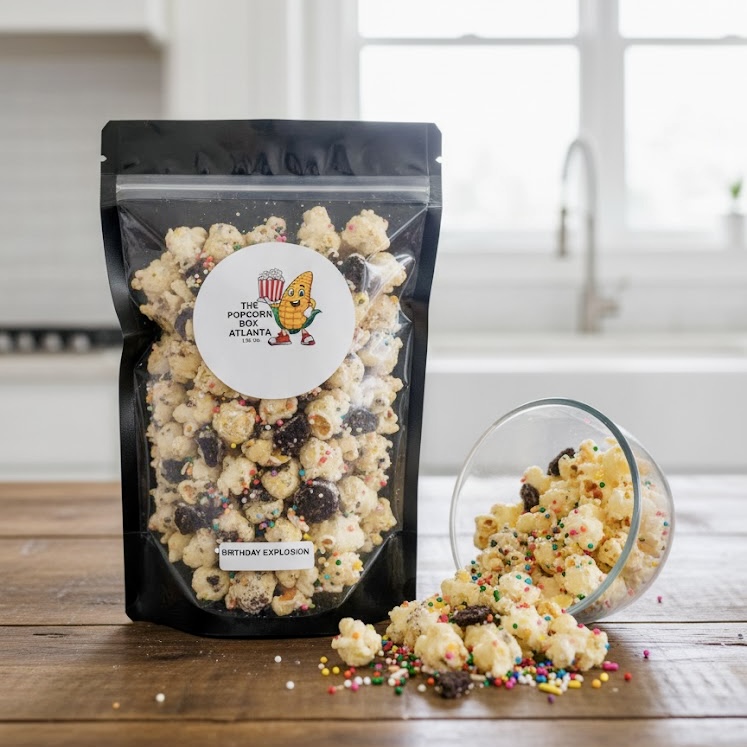 Eventually, I shifted into gourmet popcorn for everybody — kids, families, events, fundraisers — and that’s when The Popcorn Box Atlanta started coming to life. What began as unique, infused popcorn on Etsy grew into full-blown flavors, holiday boxes, pop-ups, and now a fundraising platform.