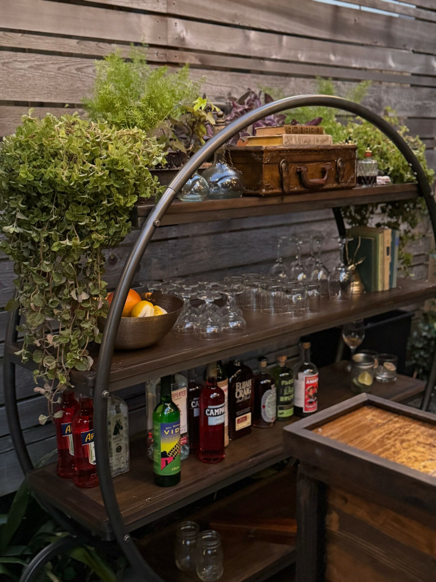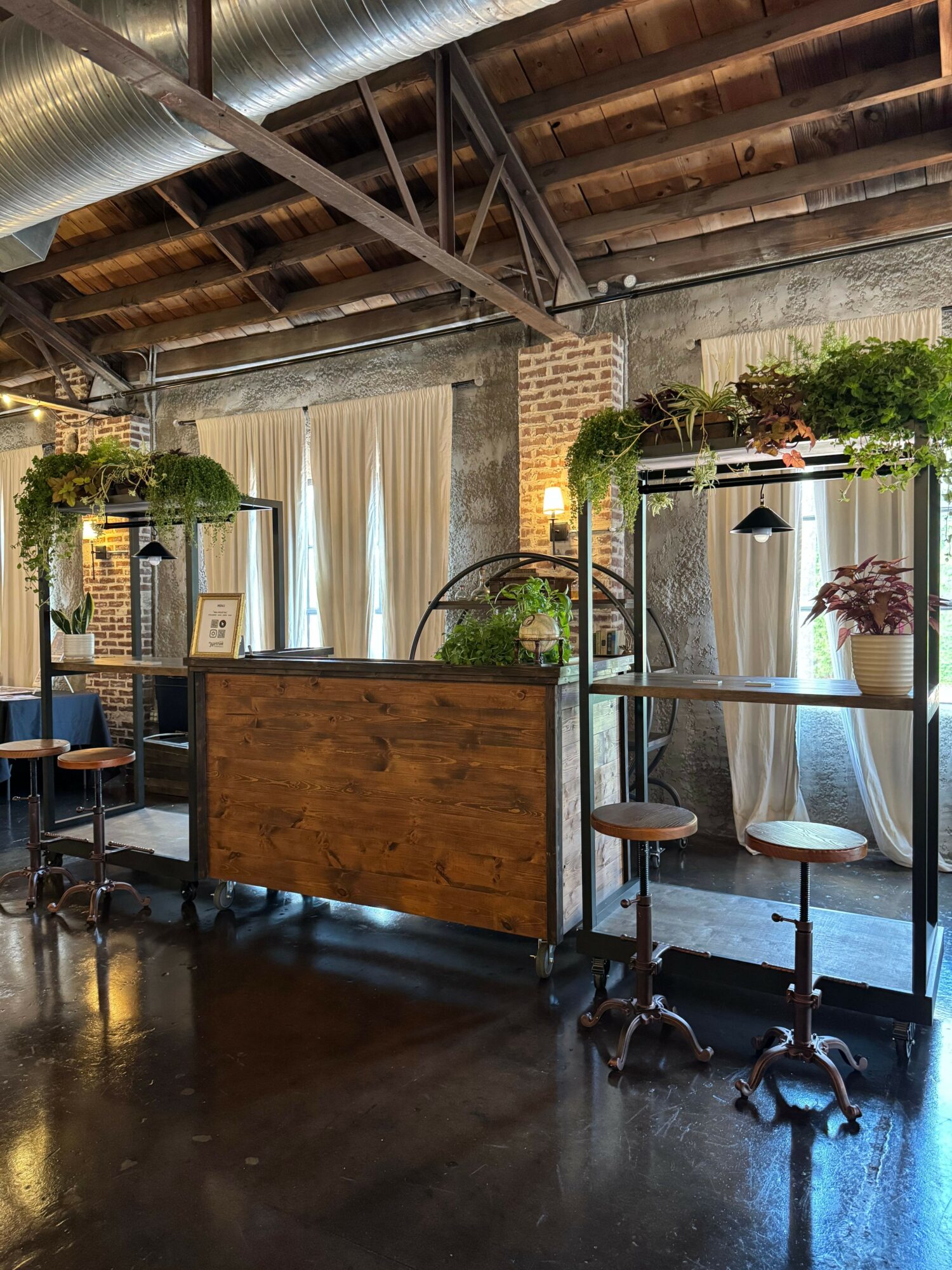 We have since partnered with a local craft carpentry studio, All Custom Carpentry, to help us build out our show stopping “Garden Bar,” The Garden Bar is our one of a kind, fully realized vision of not just bringing a bar to your event, but bringing *a whole bar* to your event. Barstools, bar top, atmosphere, and all. We deck it out with an assortment of plants and live foliage that is grown by Deb’s family who own a greenhouse up in Tennessee. Shout out to Country Gardens Greenhouse!