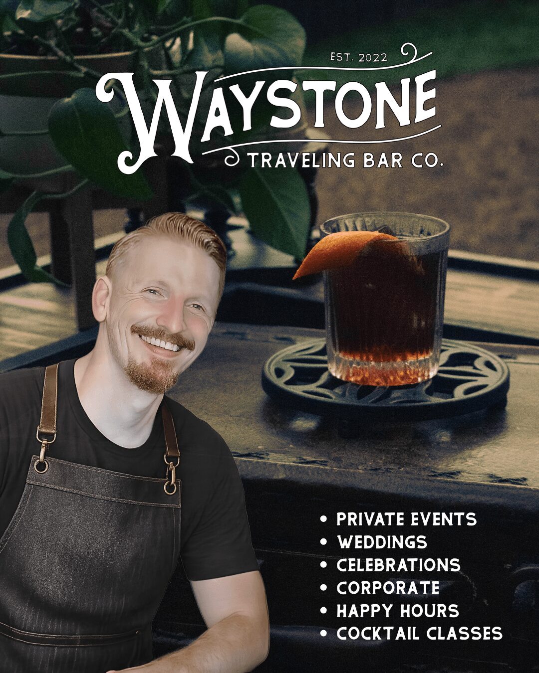The story of Waystone is quite long and definitely not without its ups and downs, but I’ll try to keep it as concise as I can. It all started in 2022 shortly after my wife, Deb, and I moved back to Georgia to help provide support for family that was going through some medical hardship at the time. During this time I saw a horse trailer bar online and was introduced to the idea of mobile bartending as a legitimate business model. I was obsessed. I saw, and still see, the mobile bar model as a way for people like myself to go from hourly employee in the hospitality industry to fulltime business owner. As a career hospitality guy, I’ve got 16 years of experience behind the bar and over the course of my career I’ve learned that many folks love the idea of one day owning a bar or restaurant but they lack the resources required to start one. And therein lies the beauty of the mobile bar. There’s a low barrier to entry but the sky is the limit. You can do backyard shindigs for friends and family as a hobby or you can scale it all the way up to a massive operation with warehouses full of equipment and a fleet of fulltime employees (and everything in between.) But at it’s core, the mobile bar is a reflection of the owner and their values. It’s like a microcosm of your personality. So in that way, its a really cool way to express yourself.