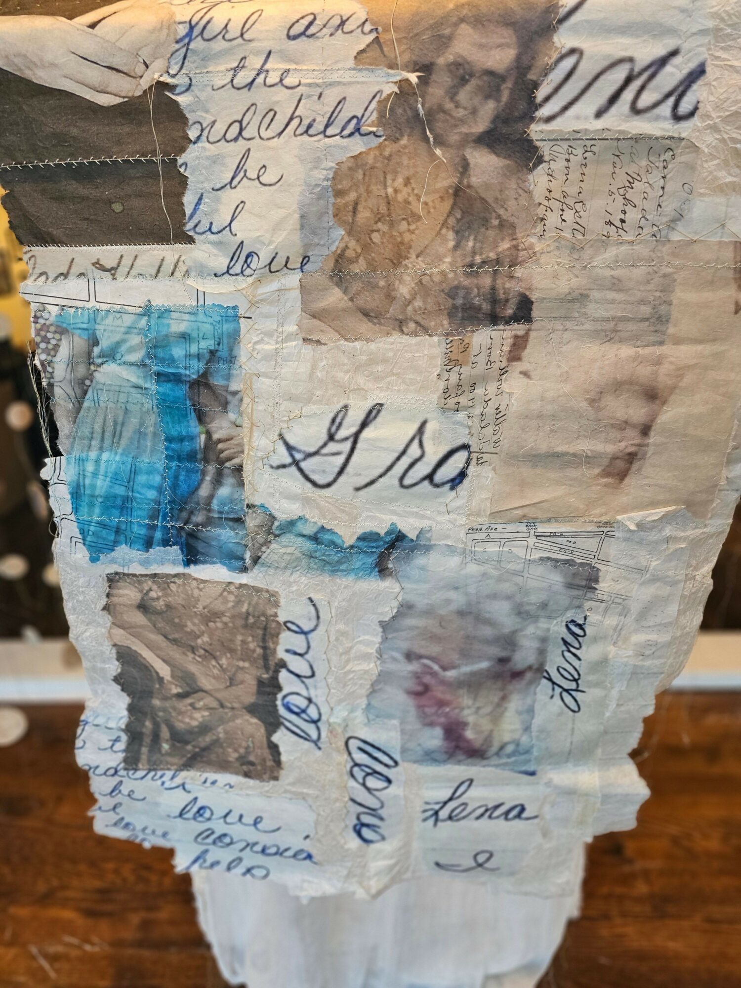 How I view my art and artistic journey has been heavily influenced the choices I make as mother. That experience changed how I thought about time, inheritance, and the kinds of histories that get carried forward. In working through my mother’s estate, I began researching letters and documents connected to my female ancestors, and that material gradually became central to my work. Using ink, thread, and paper, I started responding to those texts through acts of writing, stitching, and repetition—gestures that mirror the labor of memory itself.
