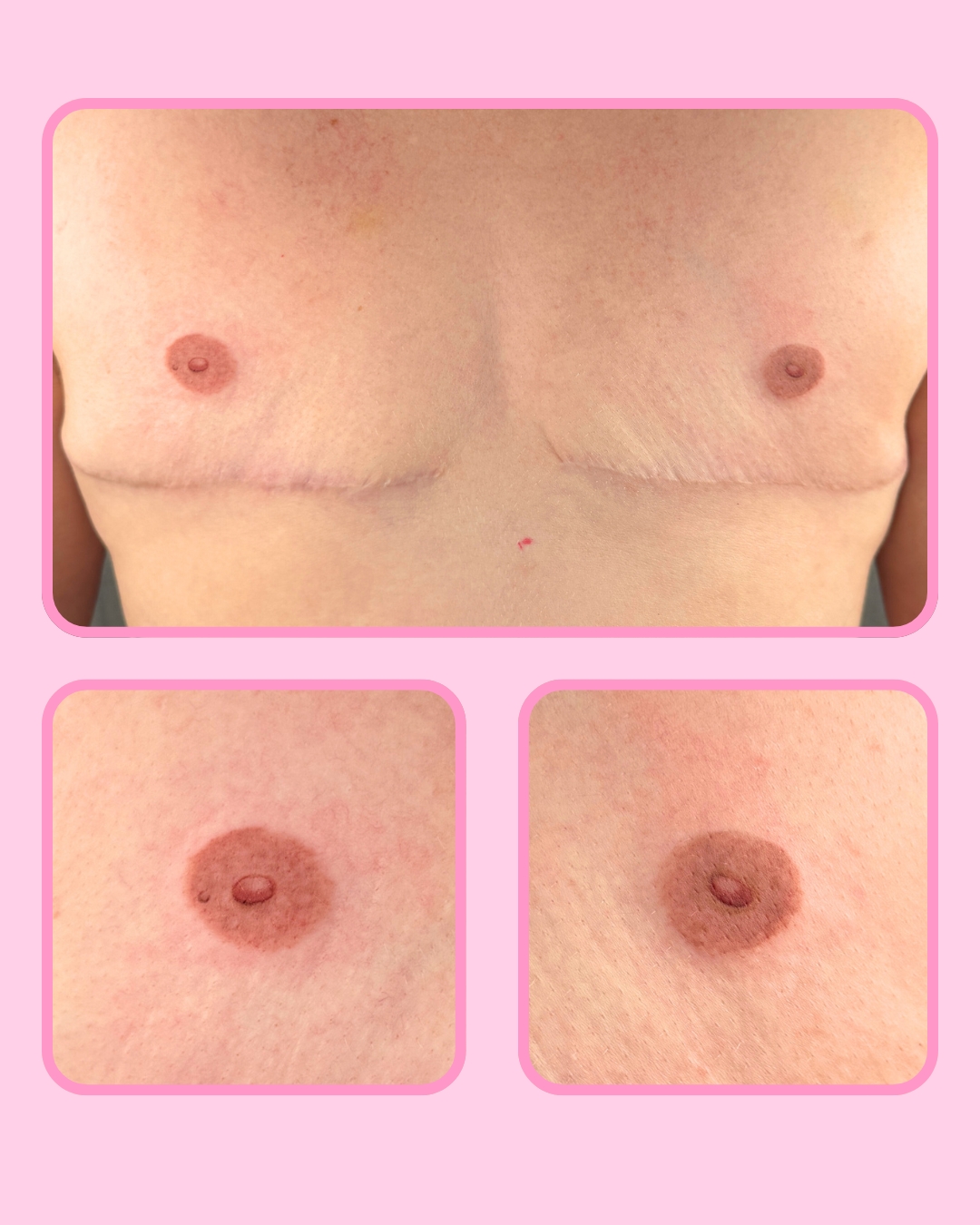 I specialize in creating realistic 3D areolas, 3D navels, and nipple graft repigmentation and reshaping. Not a lot of folks in cosmetic/paramedical tattooing emphasize it’s use as gender affirming care. I strive to create a safe space for all folks to feel like their most fullfilled self, and to be comfortable in their own skin.