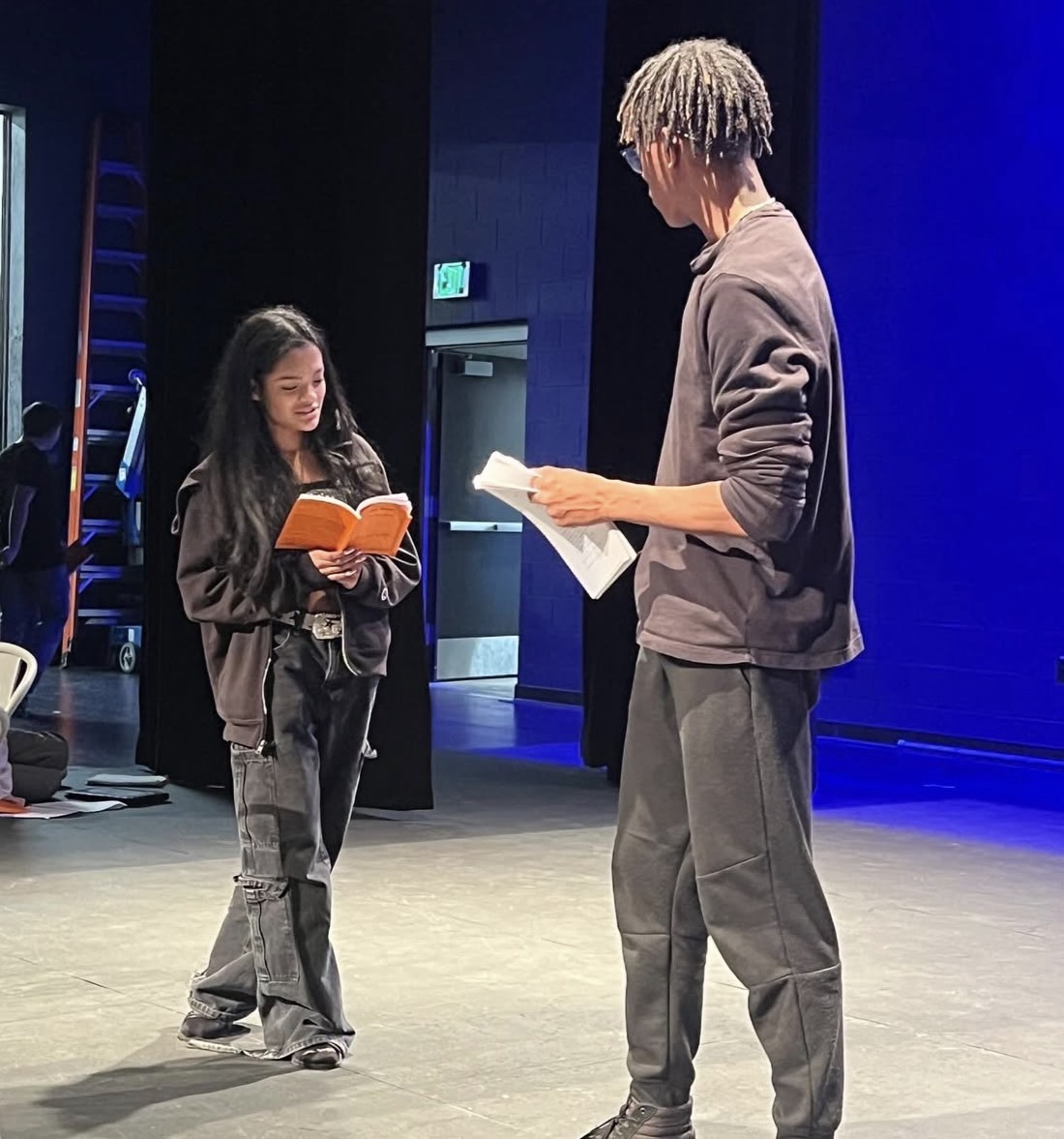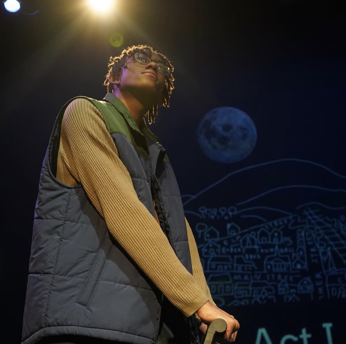 In my junior year I joined theater. At the start, joining theater was my first time directing, writing and choreographing my first ever “Student directed One Act Festival.” During this I learned a lot about stage acting, play writing, stage positions, communication, confidence, and technical work. My play was called “The 4 Masquerades” and this was at the school I graduated from at Riverdale Ridge. This was very hard to get done but I had a lot of help from my peers and my old teacher Judd Farner. He was seen from me as my mentor throughout my theater career in high school. Now during my senior year, I acted in my first play in Thornton Wilder’s “Our Town.” In this I played the male lead, “George Gibbs” and this is quite literally one of the star experiences in my whole entire life. Not just the play itself but outside of it, as far as hanging out with my peers and getting closer with them in the build up to opening night and after closing night. Then after “Our Town” I was in the “24 hour play Project.” This is where actors and directors come together to make multiple mini staged plays in just 24 hours. This was kind of more stressful than “Our town” only because it was literally making a play in a span of a day and we mainly just improvised. We all combined our ideas into one and made it a unique story to the audience. For me, this is where I felt like my acting was at an intermediate level knowing that I literally just started out during “Our Town.” At the end of the year, theater always has a their annual “Ghost light award ceremony.” This award ceremony is when all of the theater participants whether your an actor, tech crew, student director, etc.. You have to be there, chances are you will get some type of award for participating in past theater events. It was exciting and very most appreciated when I was awarded to be a part of the thespian society. A thespian means a middle school or high school student to be a part of theater either as an actor or any other supporting role.