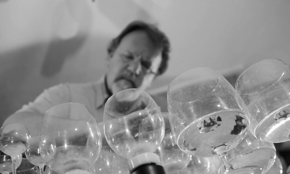I was a puppeteer, theatre tech, and composer/sound designer for theatre productions in the early 1990s. It was a time where I had a bit more stability in life to pursue instrument-building, and I’d always felt inspired by the magical, shimmering tones of the Glass Harp! So, after visiting countless restaurant suppliers and department stores collecting and auditioning stemware, I debuted my first version at a New Year’s Eve event in Midtown, Atlanta. There were crazy things that evening — wrestlers, stilt-walkers, puppets, and me, greeting visitors in a lobby and cycling through perhaps five songs I learned well while trying to improvise more songs.