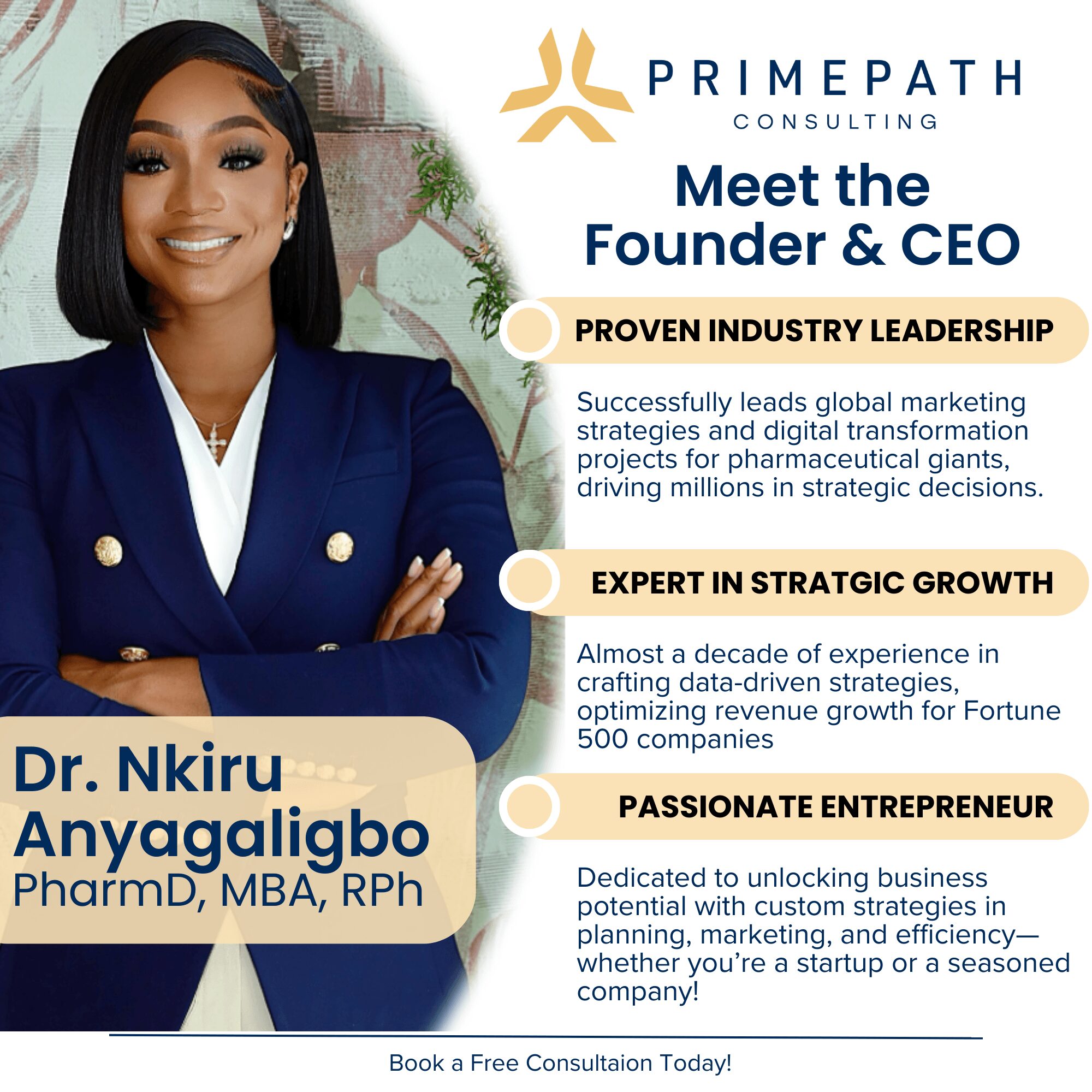 My background as a PharmD and MBA, combined with deep experience in omnichannel marketing, analytics, and digital transformation, positioned me at the intersection of science, strategy, and technology. Over time, I found myself informally advising founders, brand teams, and executives on how to think more strategically about growth, competition, and innovation. PrimePath emerged as a way to formalize that work and scale impact.