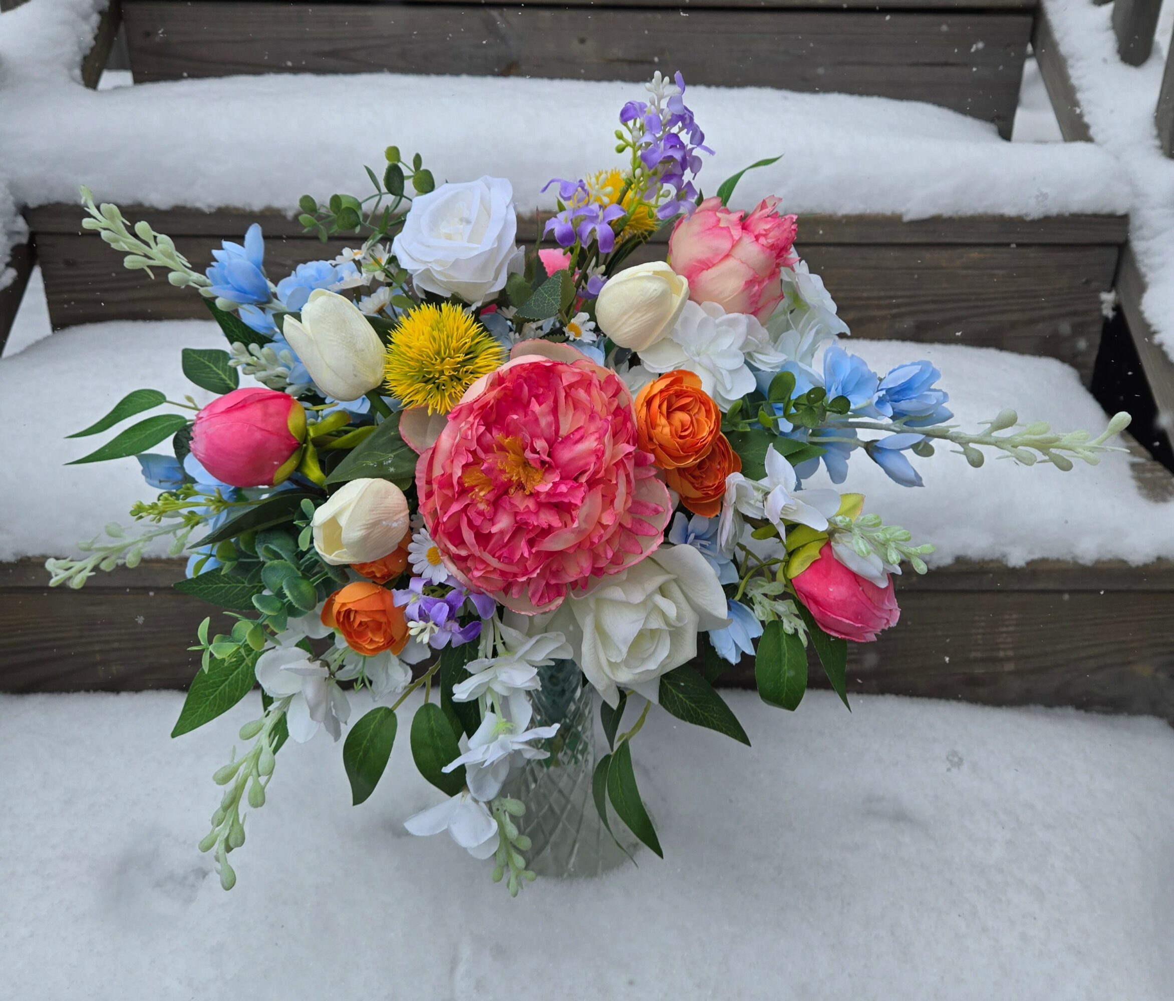 I’ve always been artistic. I’ve always been somewhat obsessed with love and all things wedding. I have been happily married to my best friend for 27 years, which definitely plays a role in my love for weddings. So, in 2020 I started dreaming of a way to combine my artistic talent with my love for weddings. I am a mom of 4. I have been a stay at home mom and a homeschool mom for over 20 years. I wouldn’t trade staying at home with my children for anything. I’ve absolutely loved it! However, as my oldest daughter started college, and as I reached my 40’s, I began to shift a bit of focus back to myself, my talents, my dreams, my future. I started looking into ways that I could design wedding florals from home, while still being a stay at home mom and a homeschool mom. I started very small, selling elopement bouquets on Etsy. A friend asked if I would design her artificial wedding flowers. That couple had allergies and were staying away from fresh flowers. So, I took on that big, beautiful wedding at the Biltmore Ballrooms in Atlanta. I rented all of the faux floral decor designs to that couple so that I could keep the cost down for them and so that I could re-use the flowers. They kept all of their personal florals to enjoy forever. That was my start! I fell in love with faux floral design.
