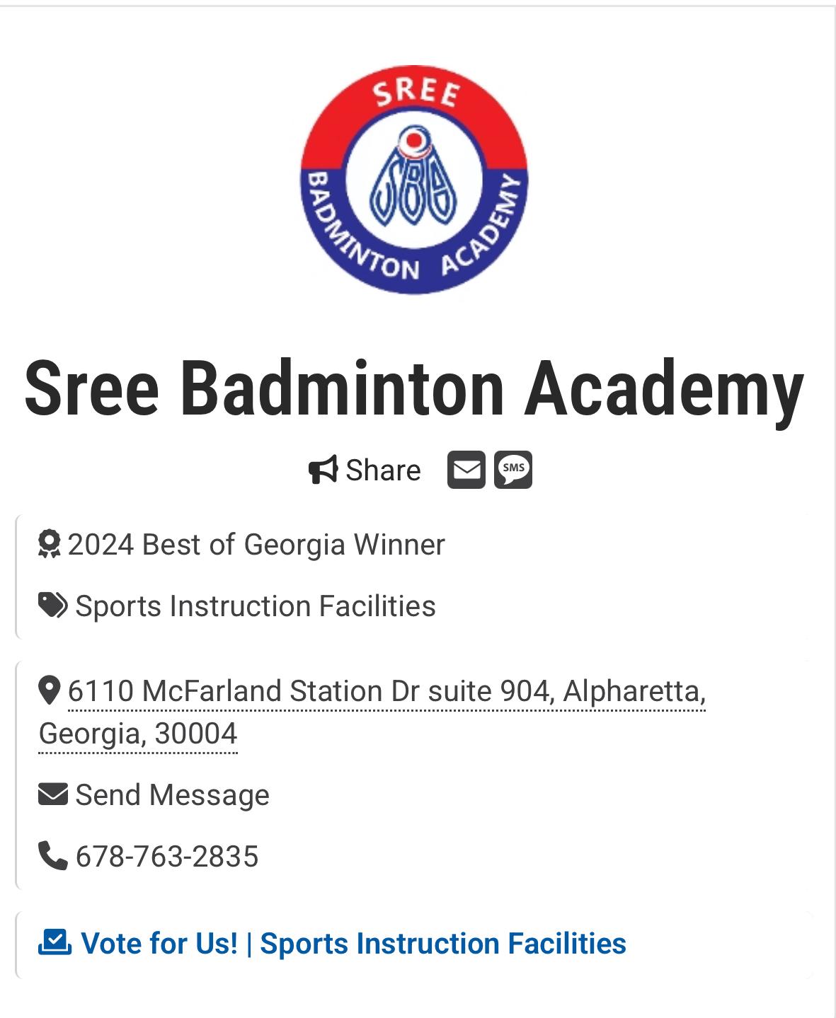 - Website: www.sreebadmintonacademy.com