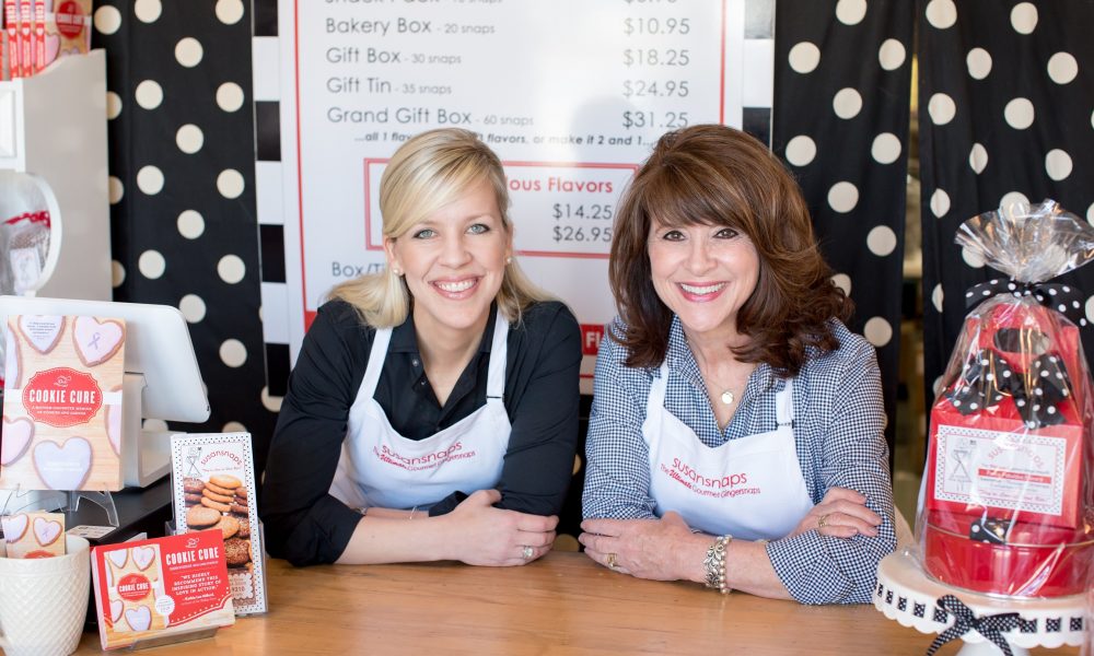 Susansnaps are a labor of love that was developed after my mom watched my Dad and me, Susan (named for my Aunt Susan who died from cancer at 28) undergo chemo within the same year. Ginger is a natural stomach soother and cookies always have a way to bring smiles, so through my mom’s small baking company, she created the ultimate gingersnap recipe. While my mom perfected her snaps, I designed the logos and packaging. As the cookies were becoming popular, my mom coined them “Susansnaps” in memory of her sister, Sue (who died from Hodgkin’s) and in honor of me (who beat Hodgkin’s at 22). What started as a little idea has grown into something much bigger than we ever expected. Today, my mom and I work side by side running Susansnaps. We bake the most delicious gourmet gingersnaps in five fabulous flavors, ship nationwide, have a charming retail shop and bakery in Atlanta.