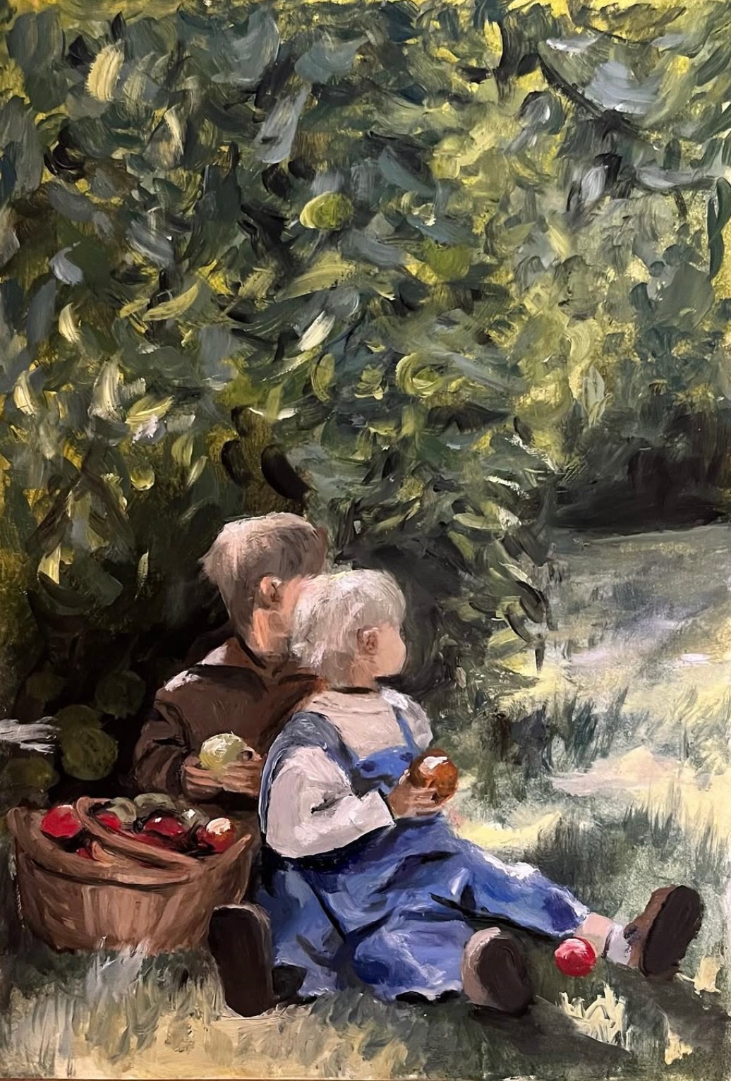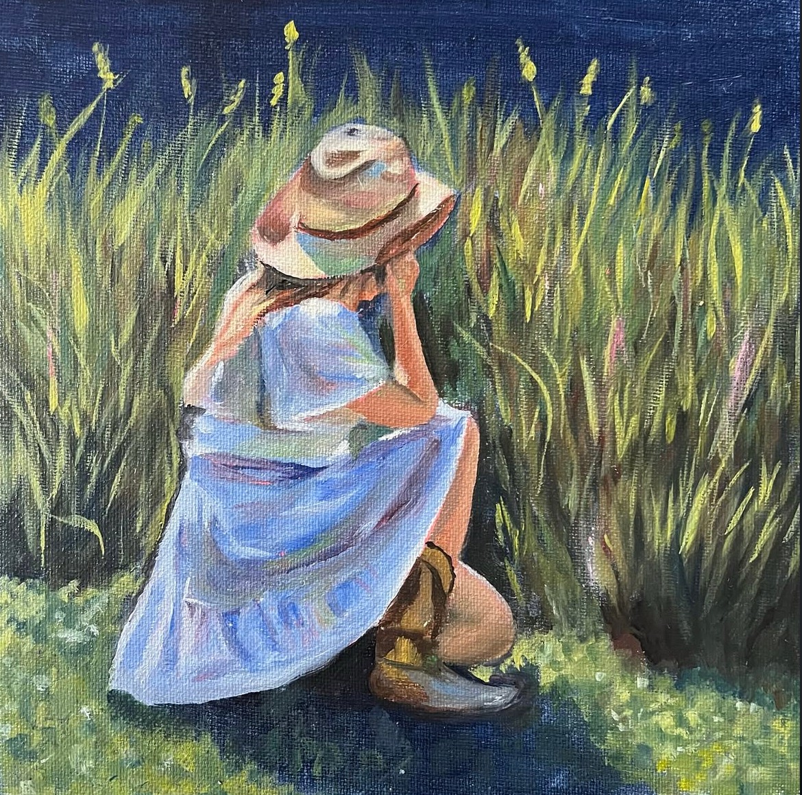 I’ve loved all things art since a little girl, and my first medium was mechanical pencil. I loved sketching Disney characters and soon graduated to acrylic paints in middle school. I was introduced to oil paints in high school, and was blown away with by how many different techniques there were with oil paint! In college, I started posting more of my art on instagram and TikTok and got more and more commissions from peers and a few strangers following my page. Now I balance painting commissions with school and work. My favorite things to paint are landscapes and farm-life inspired art.