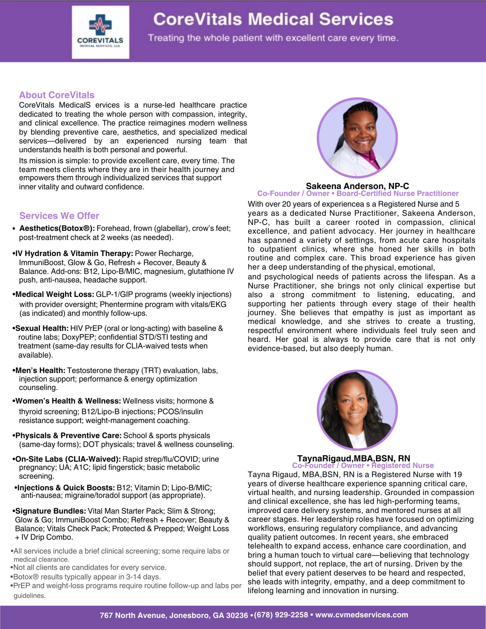 CoreVitals was truly built on both friendship and vision. My partner, Sakeena Anderson, NP-C, and I met back in 2012 while working together in PACU. From the very beginning, we worked extremely well as a team. We shared the same work ethic, the same passion for patient care, and the same desire to do more for our community.